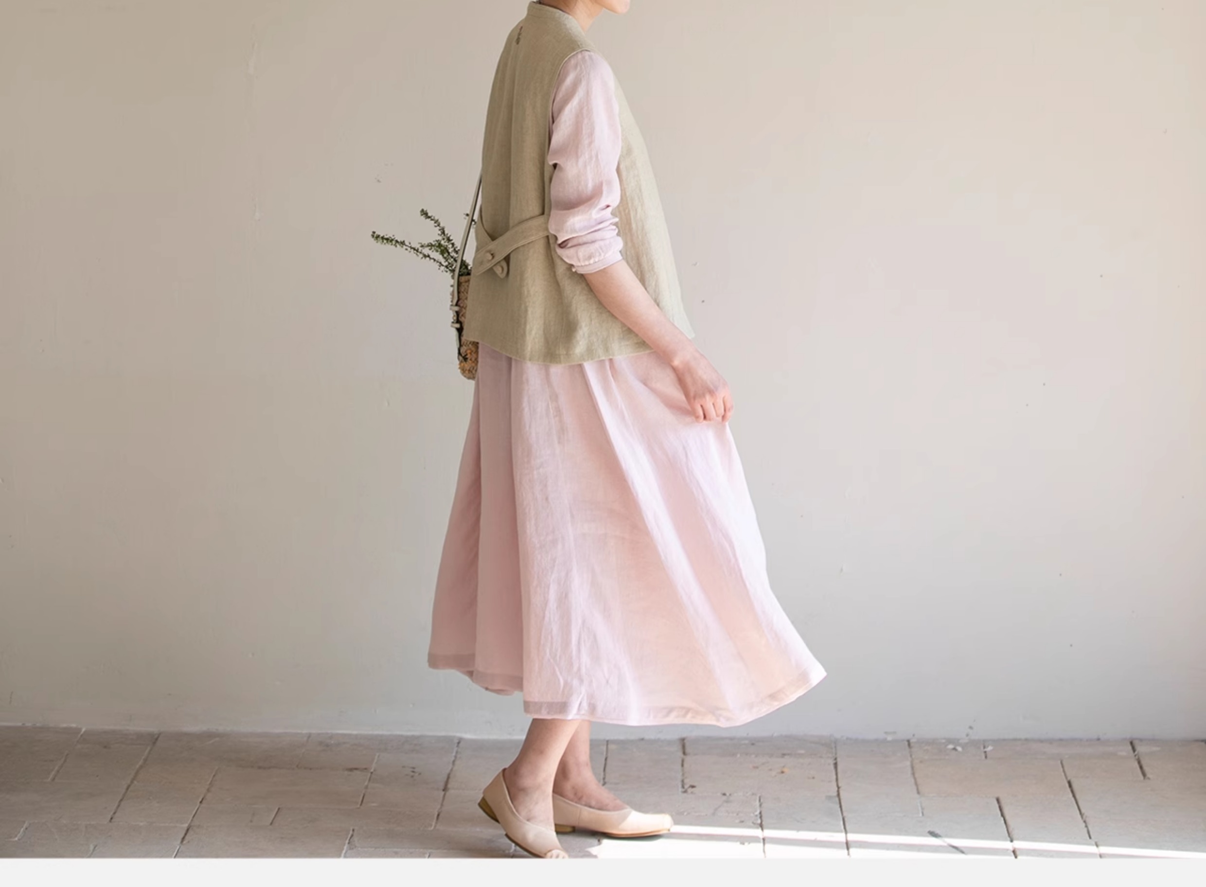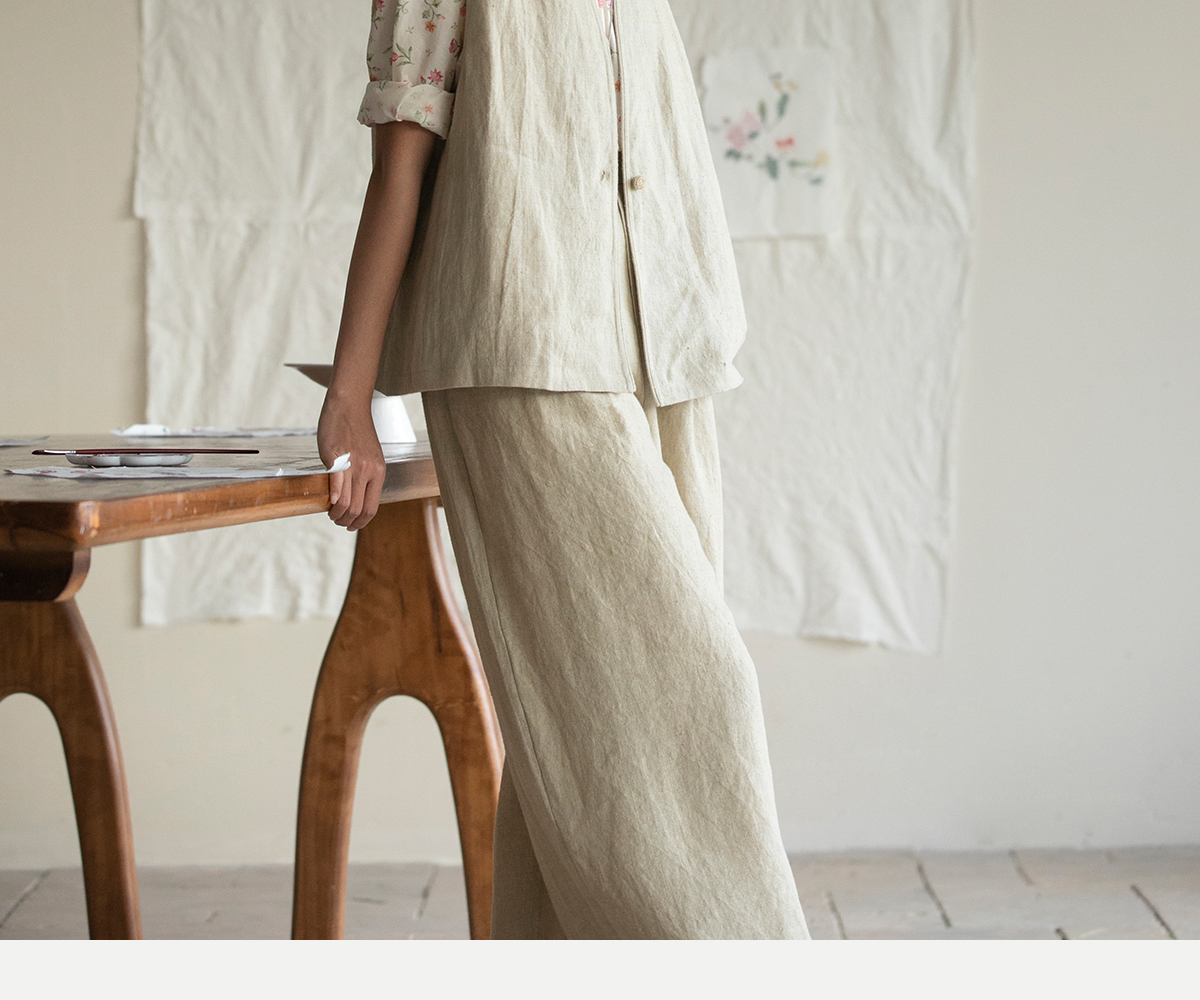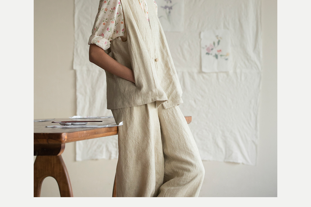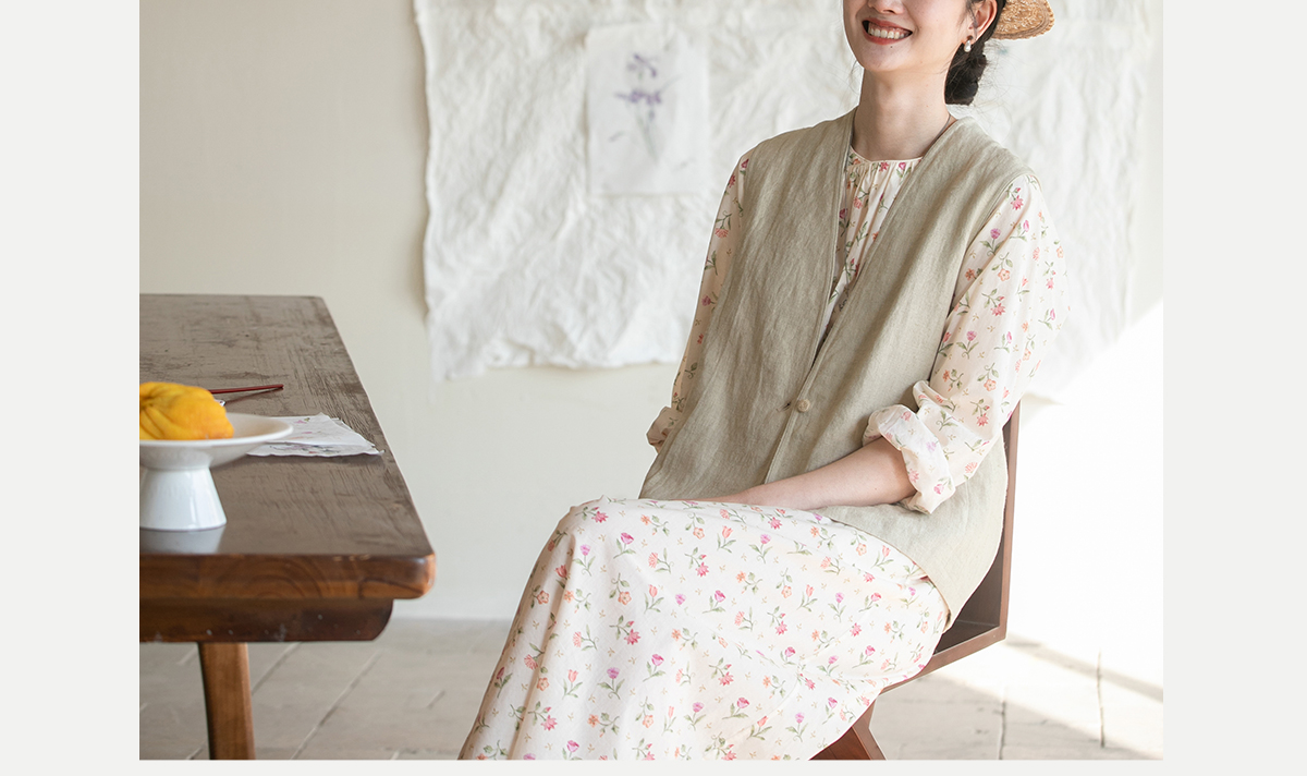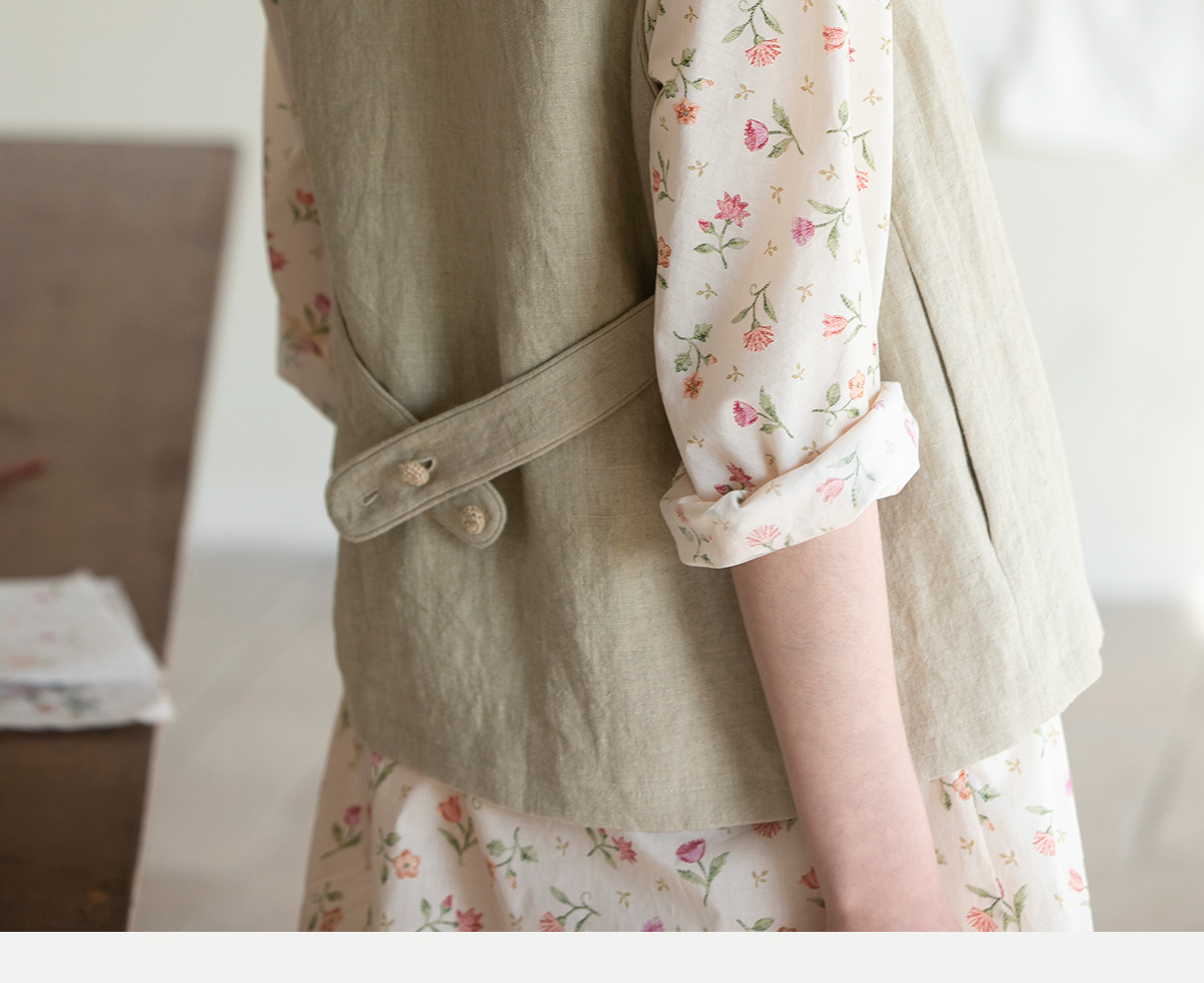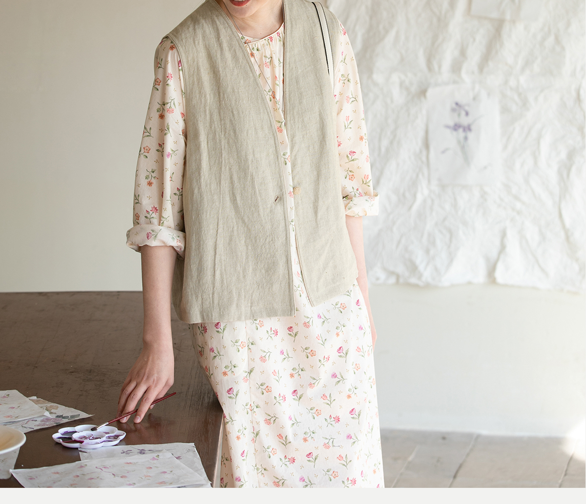 牧衣游原创 手工刺绣汉麻马夹女柔软舒适质朴百搭休闲马甲 归栀