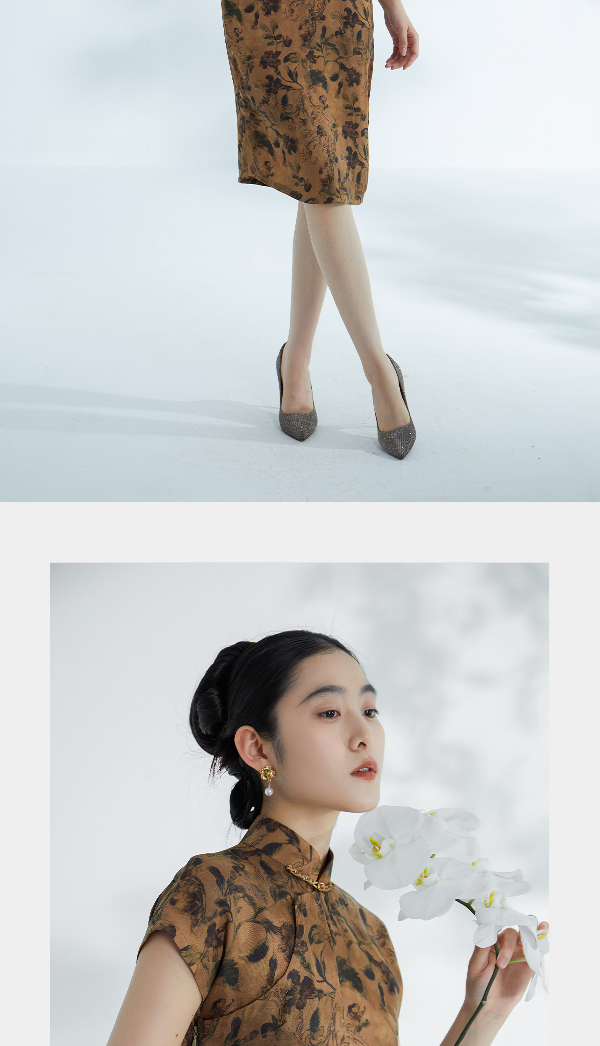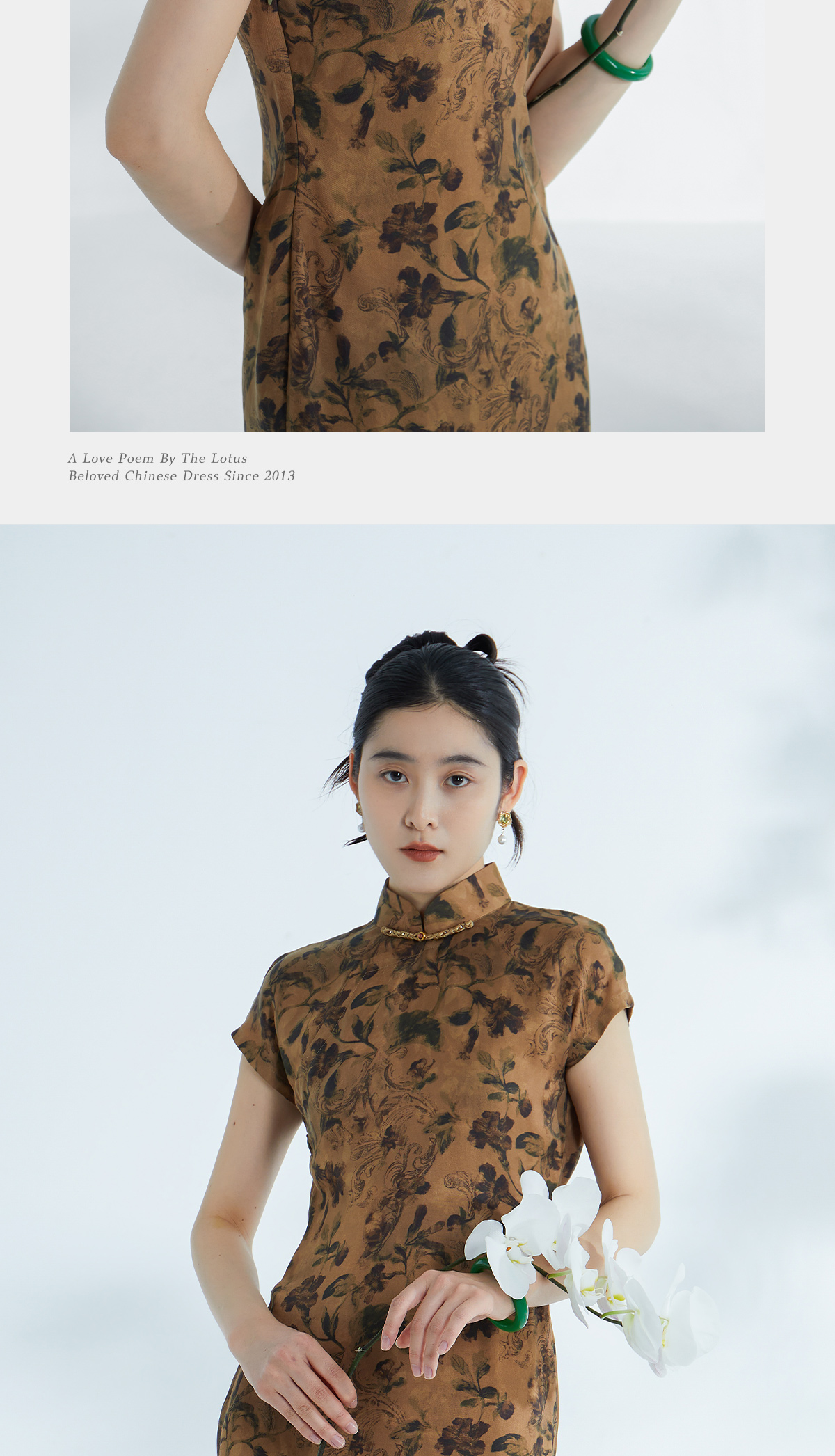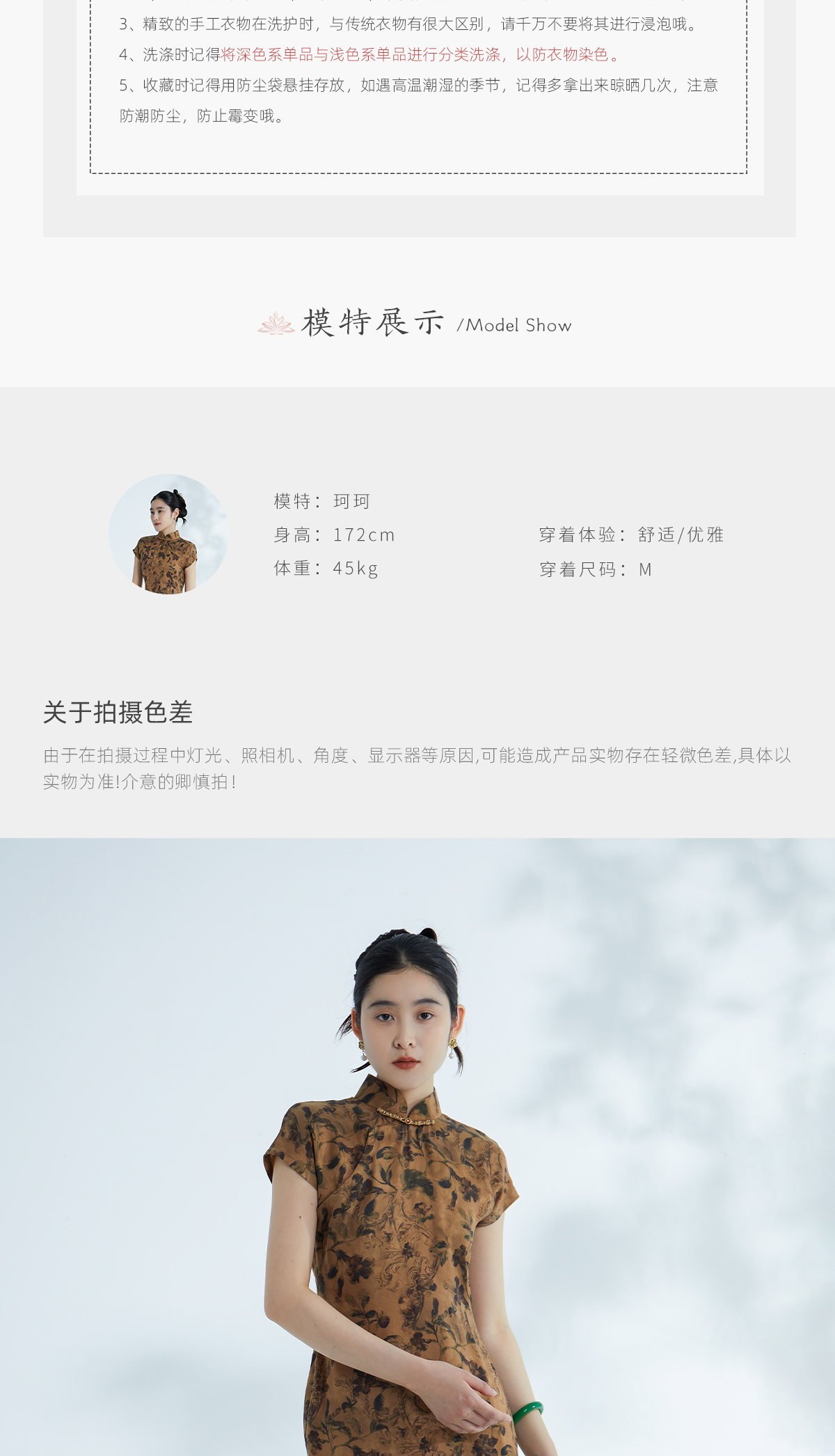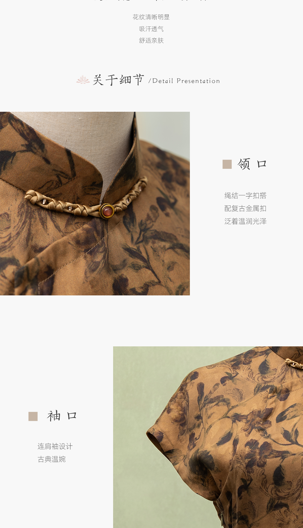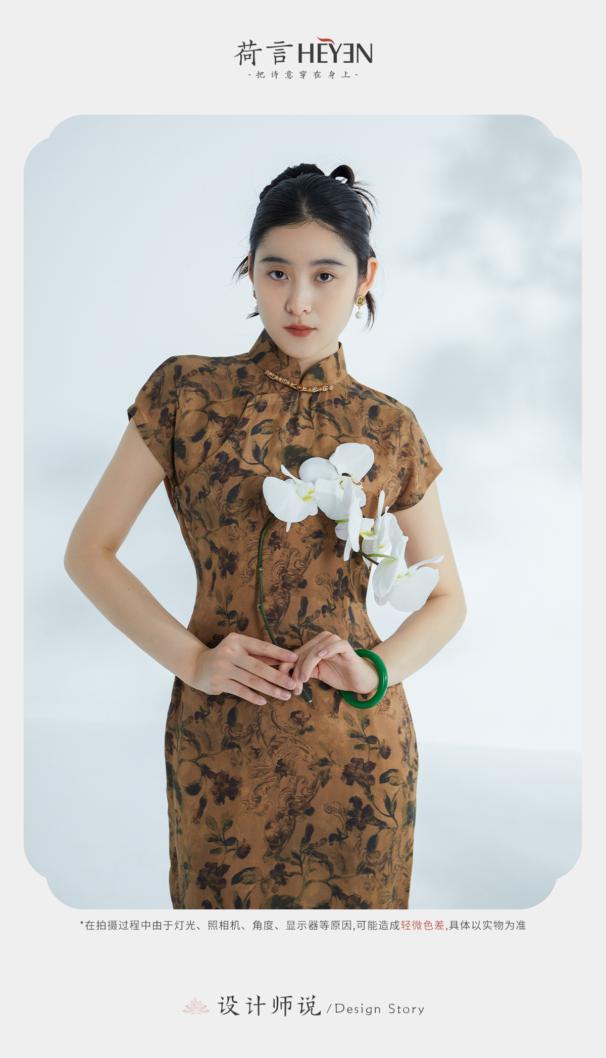 荷言GL 染衣 复古写意印花传统古法旗袍绳结一字扣