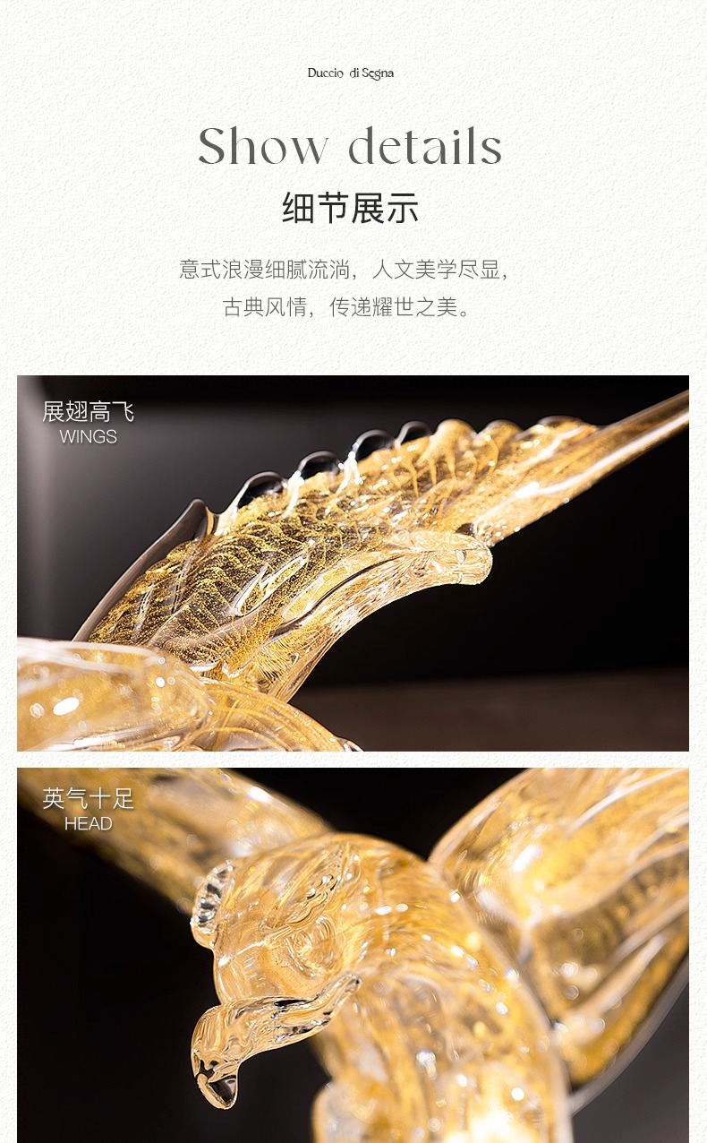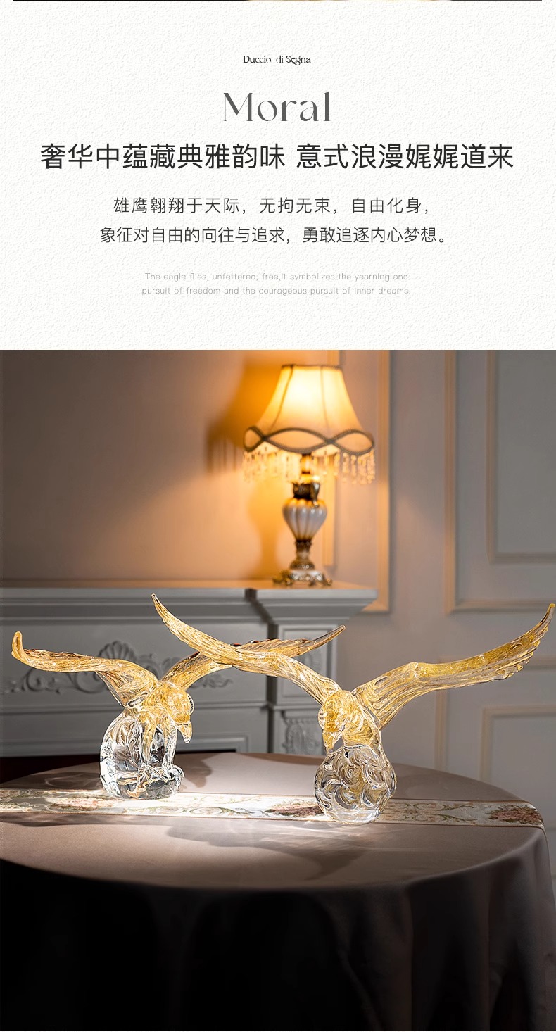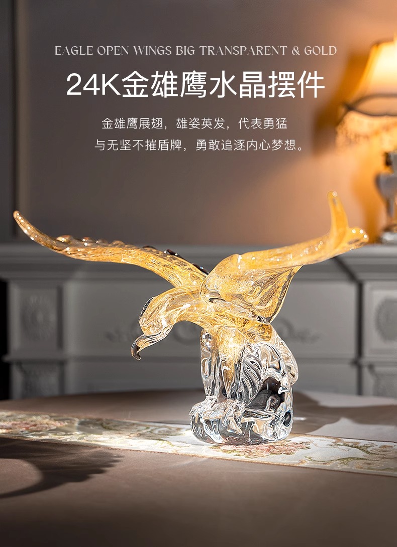 SEGNA大展宏图开业水晶工艺品艺术摆件乔迁礼品老鹰展翅客厅雄鹰展翅摆件55cm