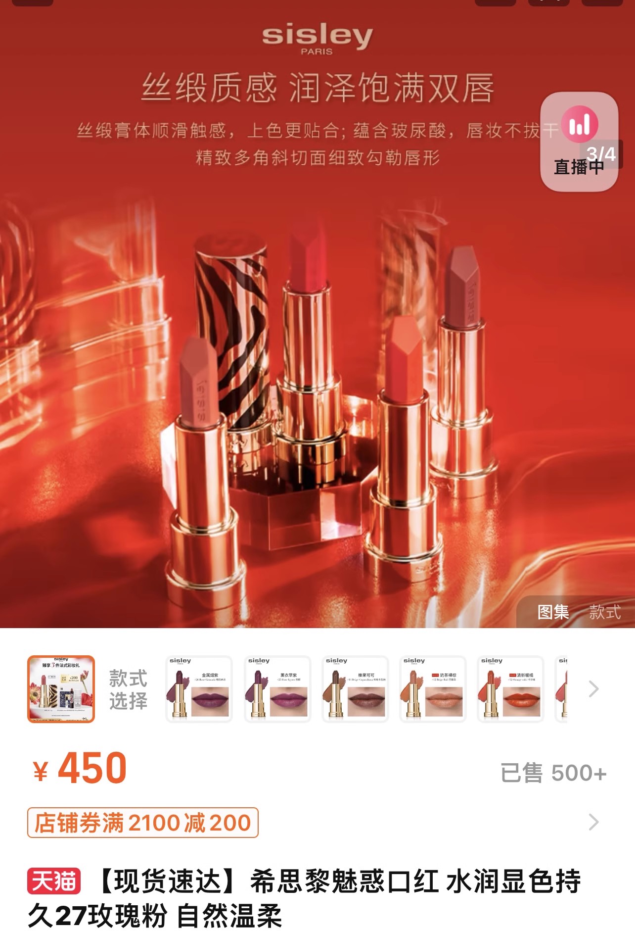 【2.12王炸割肉价】sisley希思黎魅惑口红 水润显色持久滋润 3.4g简装白盒 10#斋浦尔/24#圣达菲/30#伊比沙岛/40#摩纳哥(效期至25.6)