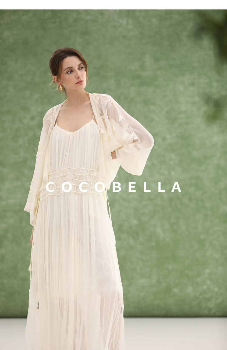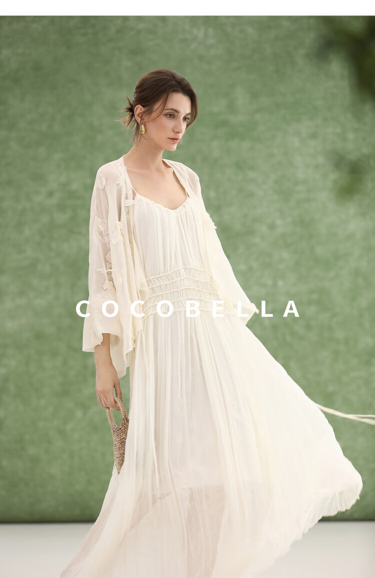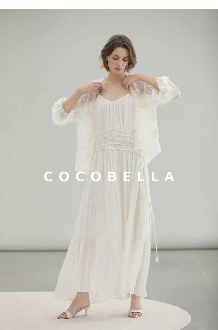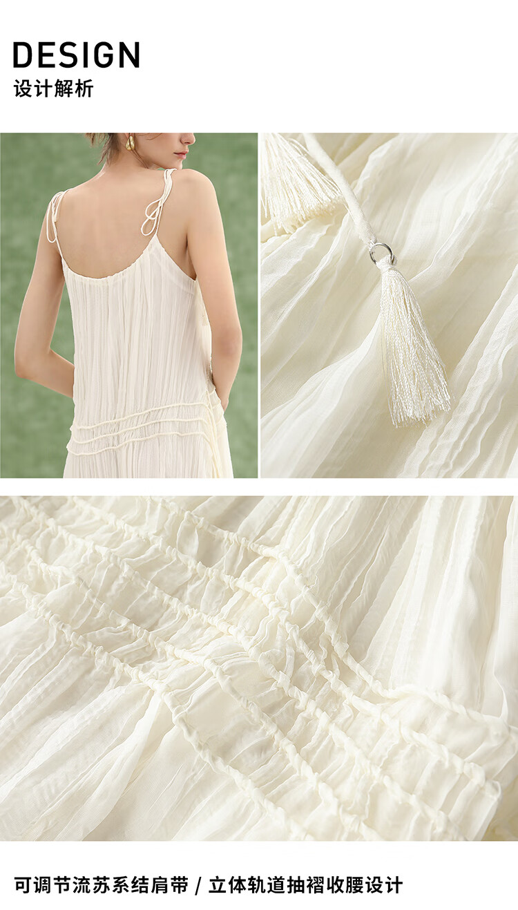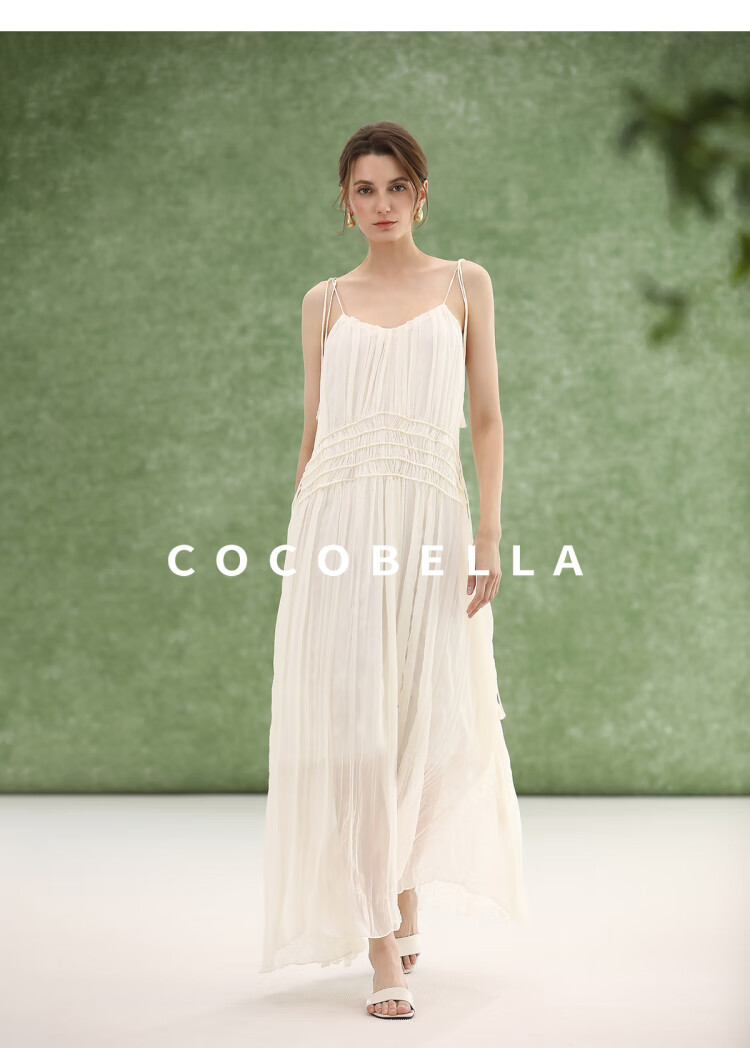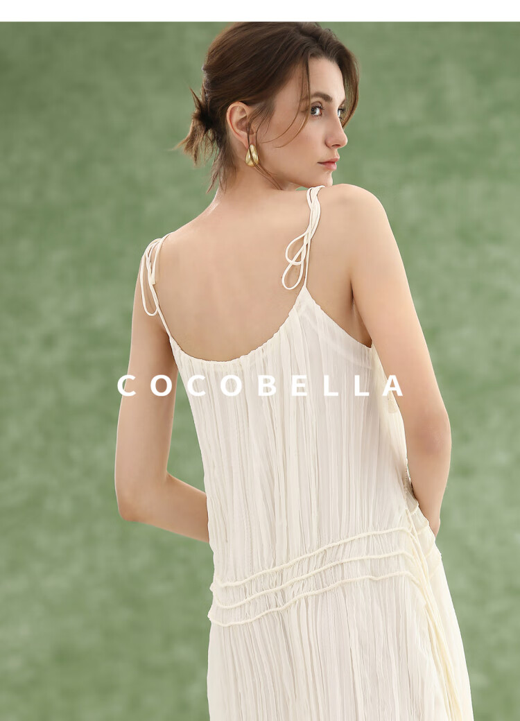 COCOBELLA重工压褶可调节流苏连衣裙度假风仙女吊带裙FR3222