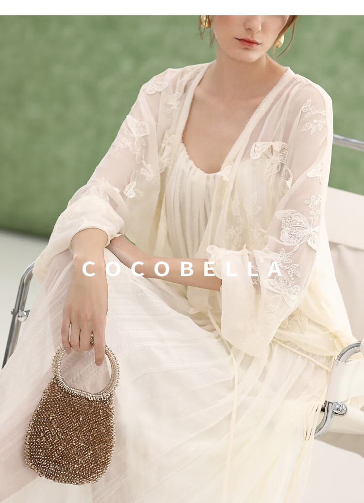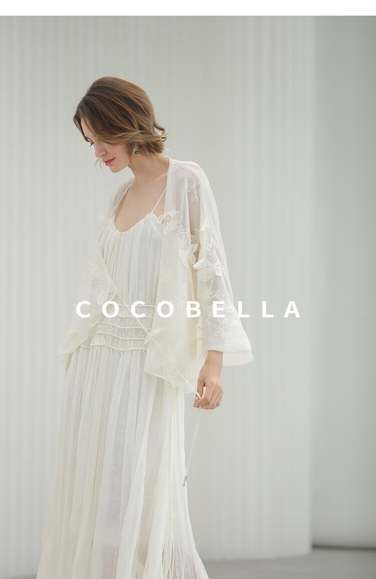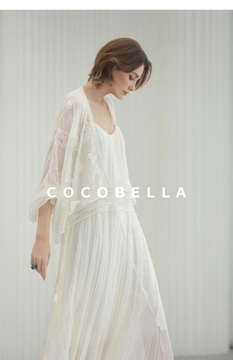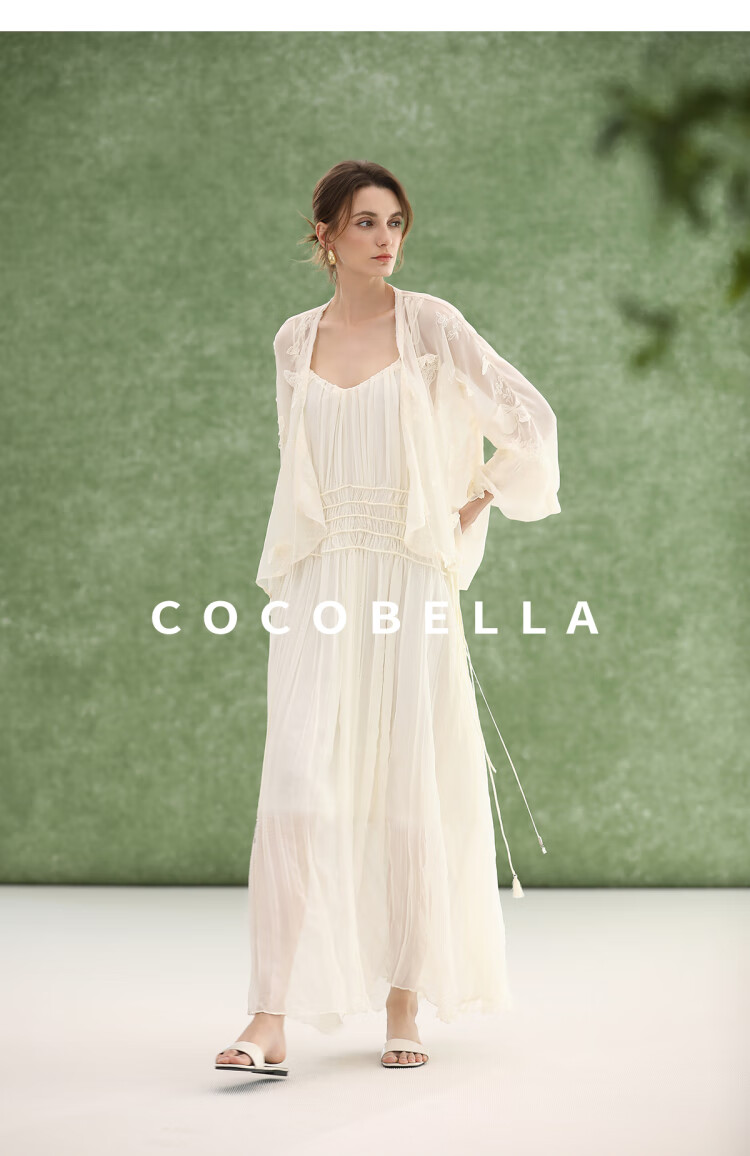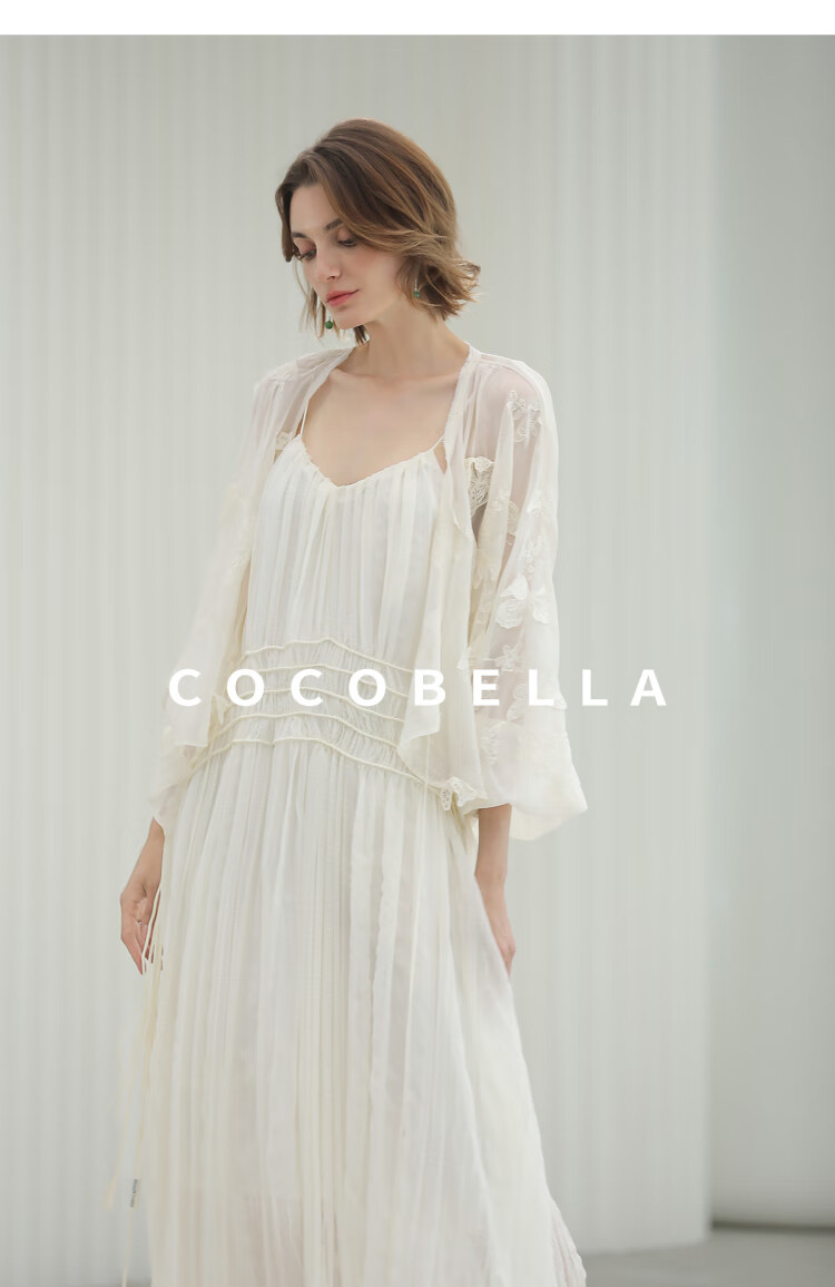 COCOBELLA重工压褶可调节流苏连衣裙度假风仙女吊带裙FR3222