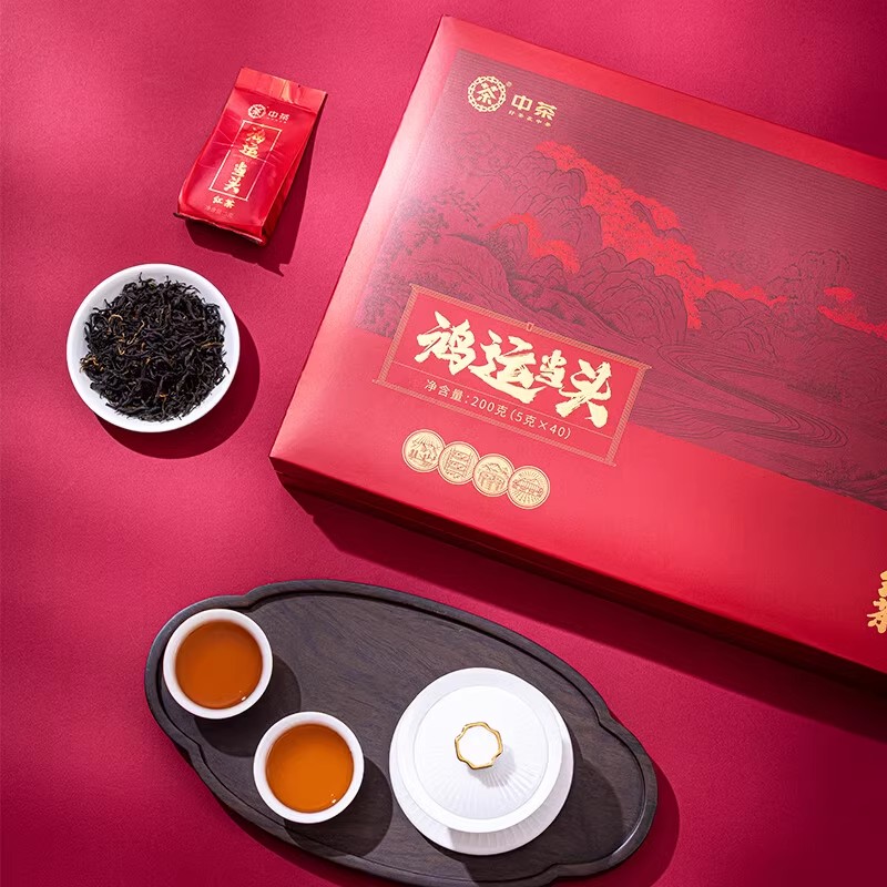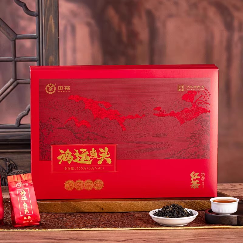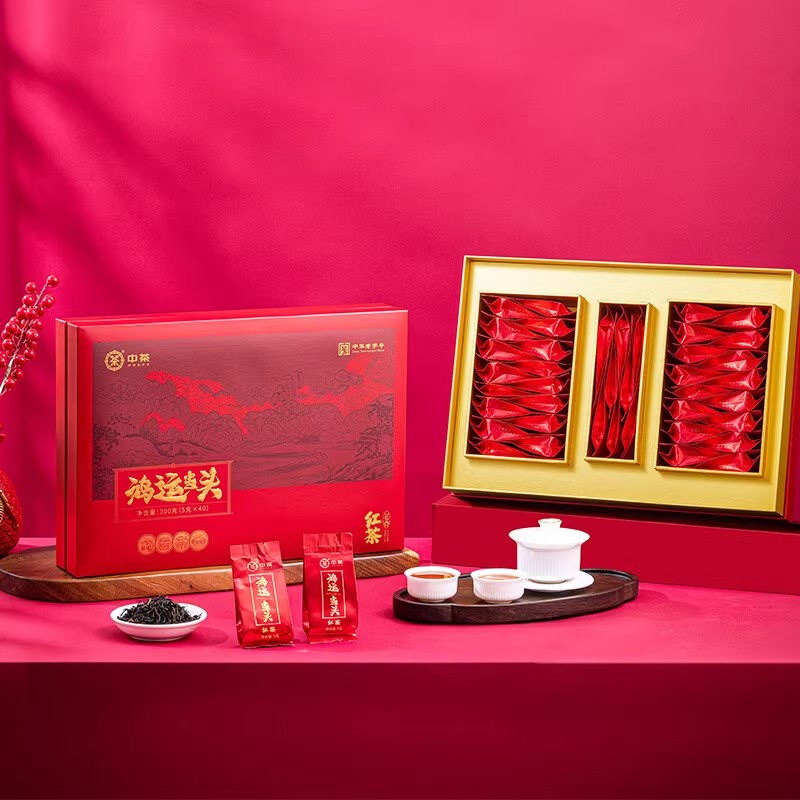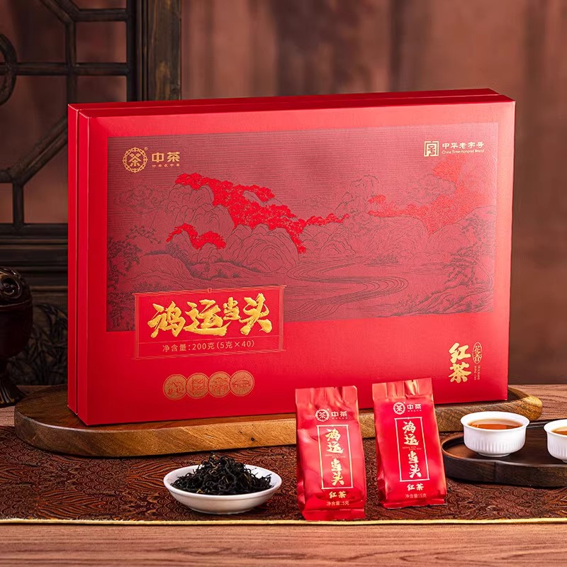 中粮-中茶 海堤鸿运当头工夫红茶花香礼盒装配礼袋200克