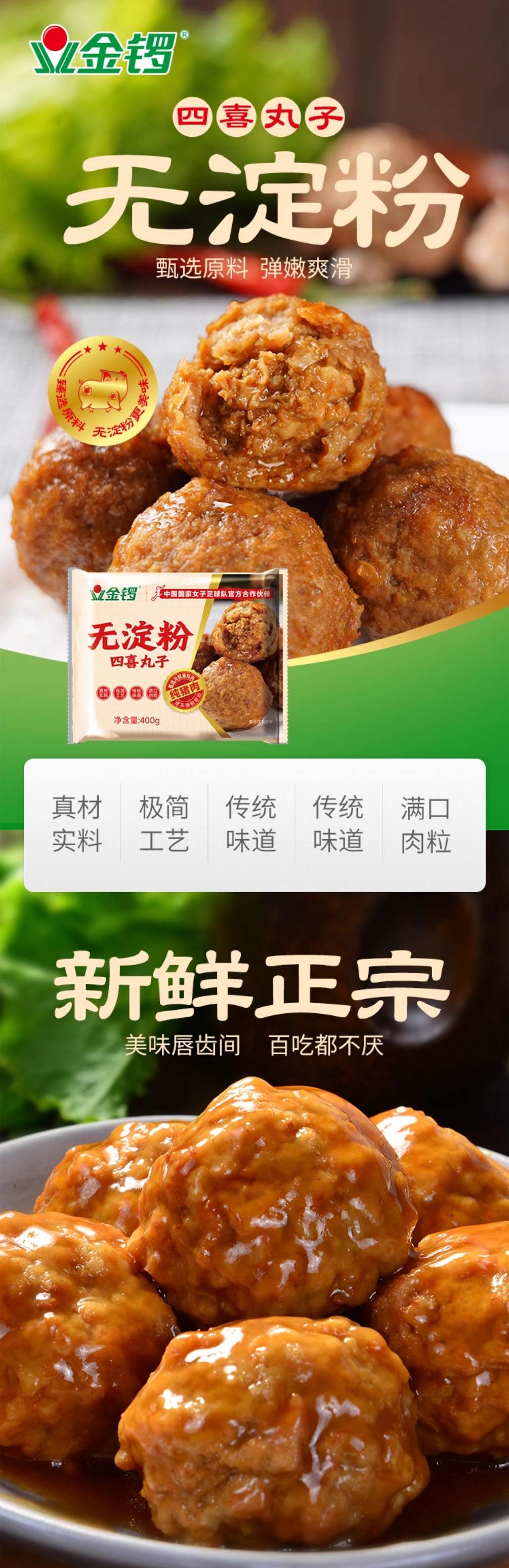 25E金锣无淀粉四喜丸子 400g/袋(8个) 20袋/件
