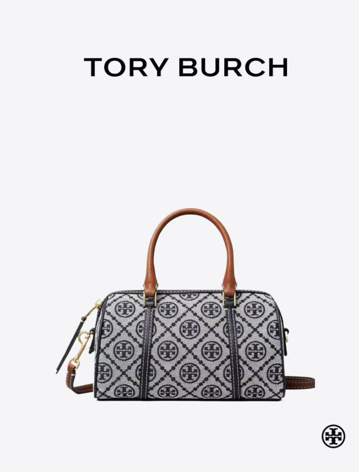 TORYBURCH汤丽柏琦TMONOGRAM迷你波士顿酒桶包170417经典 T Monogram 图案提花织物。魅力隽永又风格独具。迷你酒桶包,以经典版型融合时尚奢华气质,精巧实用。以16世纪的水手风格为灵感,诠释完美比例和独特外形。现代摩登皮革结构,配合缝线皮革顶部提柄以及搭扣细节,保留精妙结构之余,彰显精湛工艺。斜挎背带可灵活拆卸,适配不同造型。