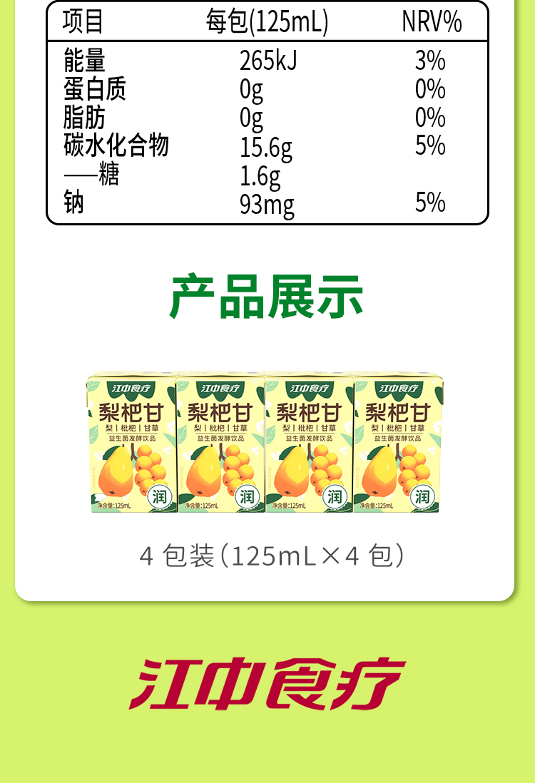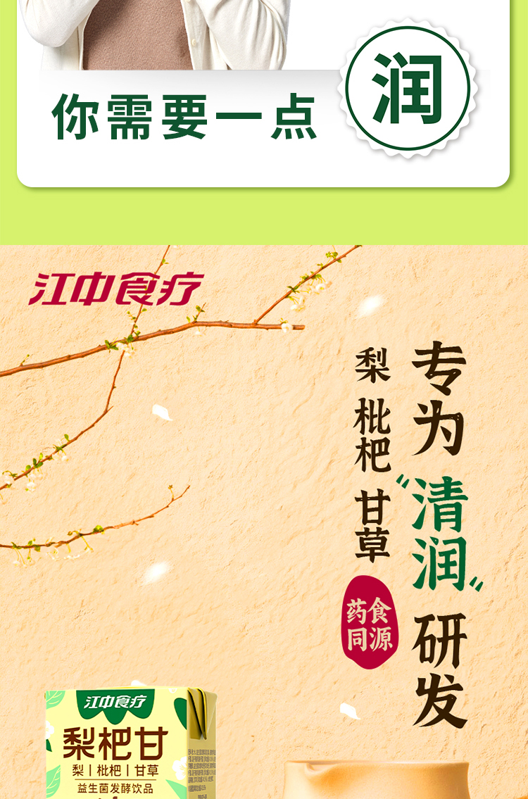 【自营】江中食疗益生菌发酵饮品胡萝卜汁+梨杷甘汁组合 125ml*8盒/12盒