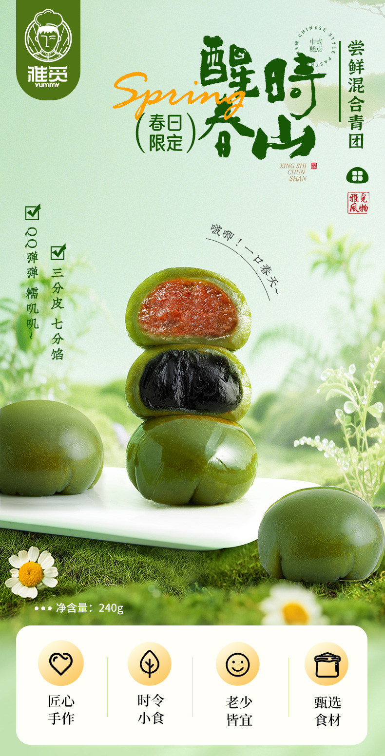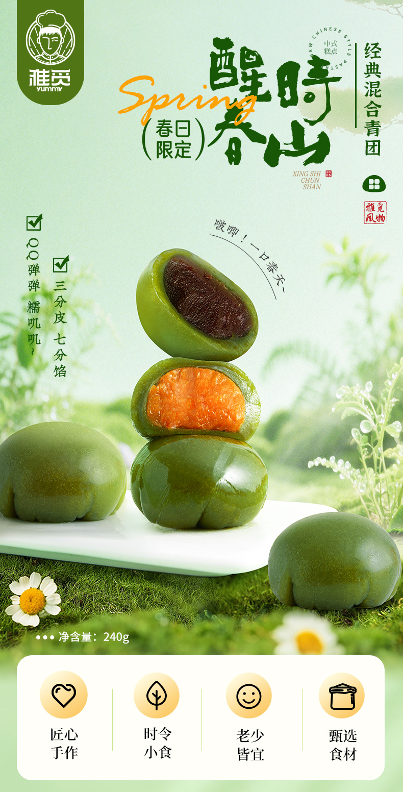 雅觅 国风系列·青团礼盒合集 古法捶打 口感 Q 弹软糯 细腻绵密 自然回甘