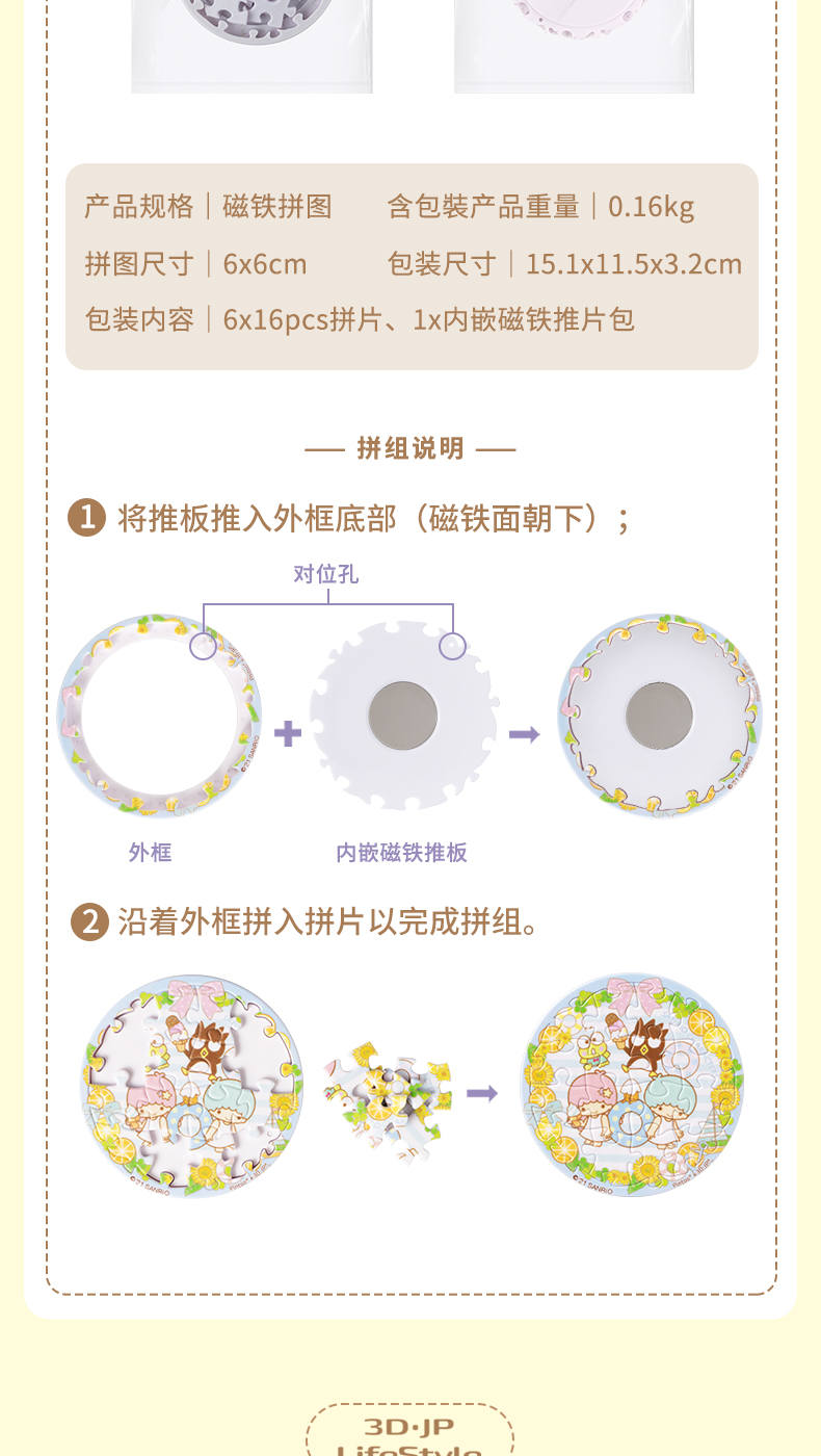 96片 磁铁拼图 塑料拼图D1200 Sanrio Characters 编织回忆的花环