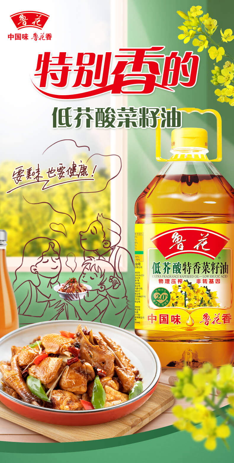 【仅供集采】鲁花低芥酸特香物理压榨菜籽油 5L*4桶 箱装