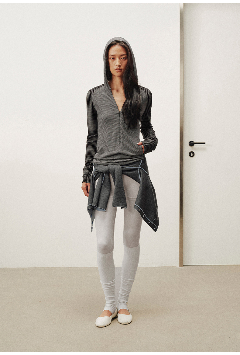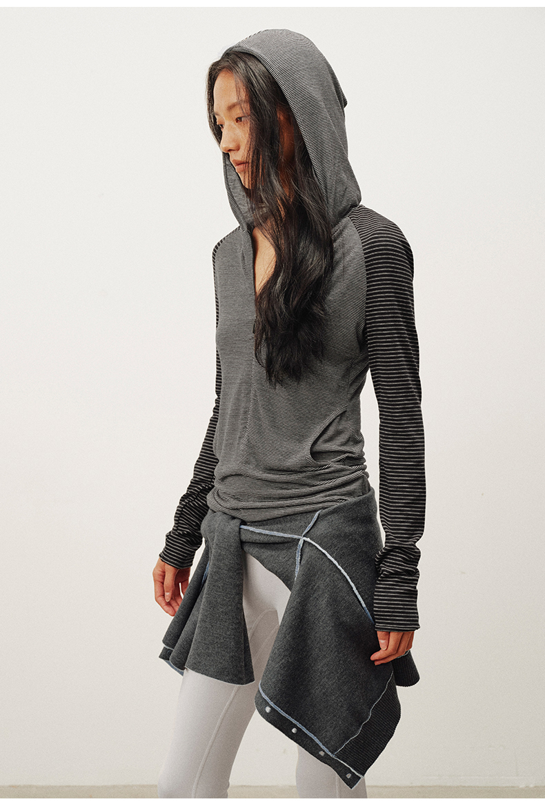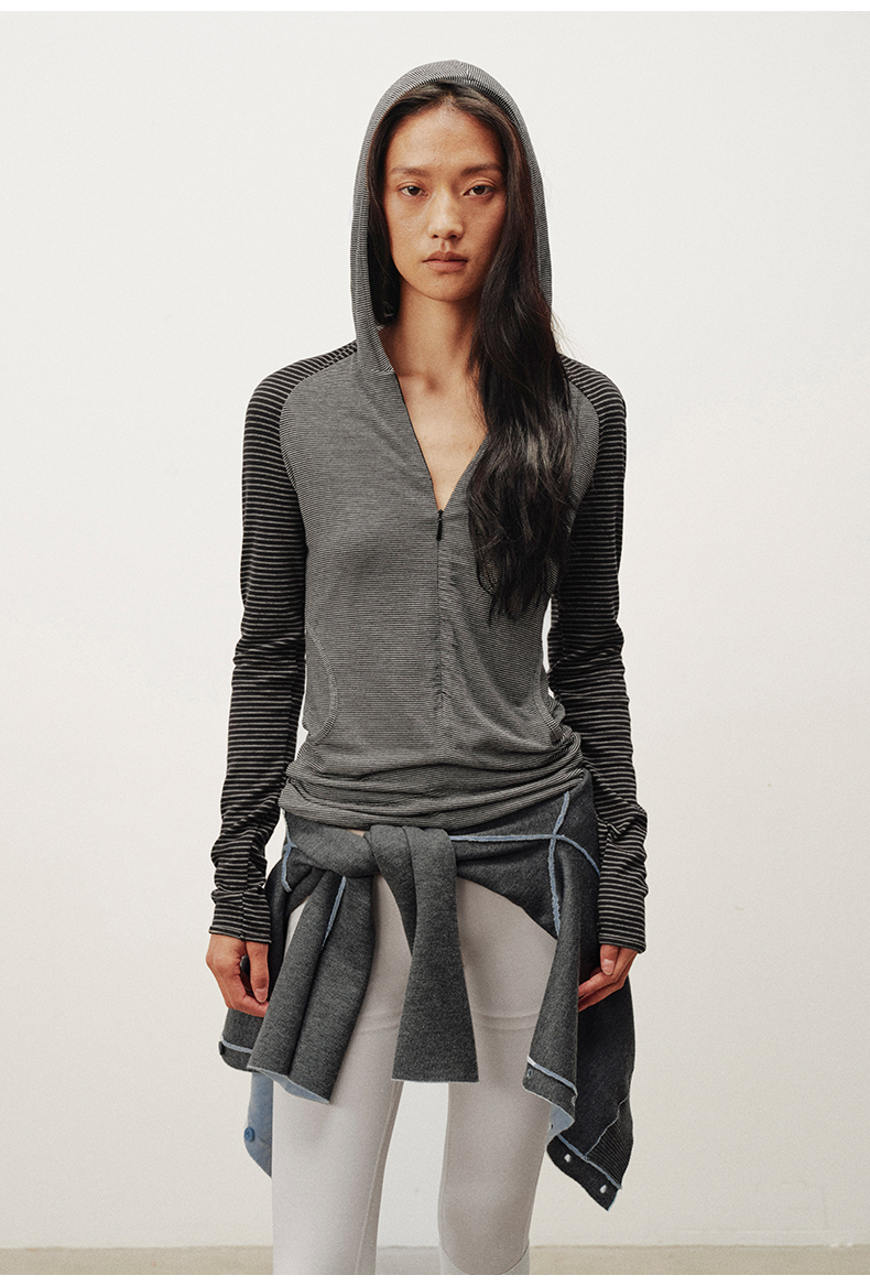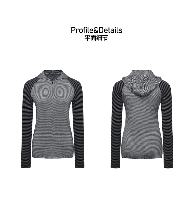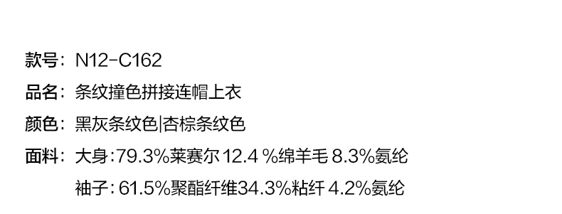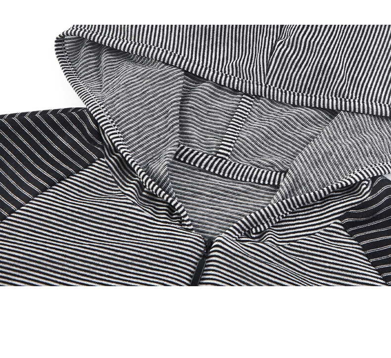 NUTH 连帽条纹长袖撞色修身针织开衫女 黑灰条纹/杏棕条纹