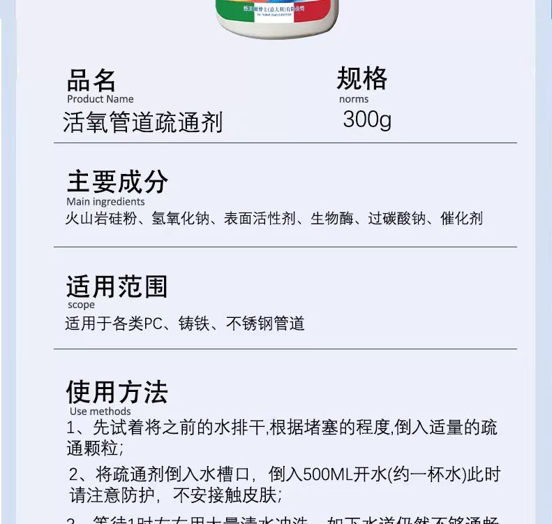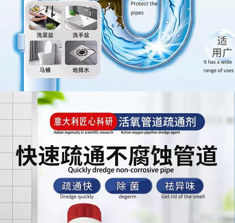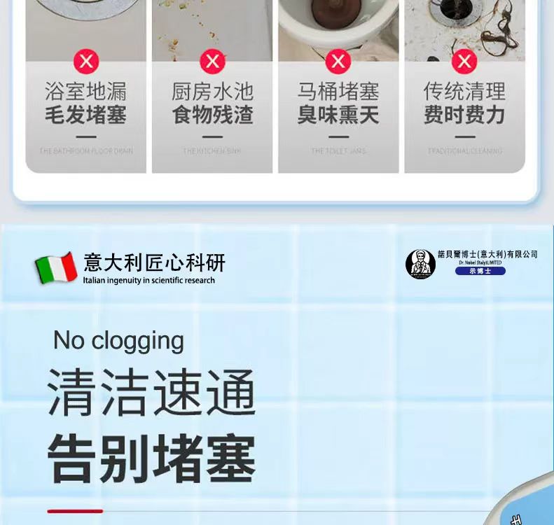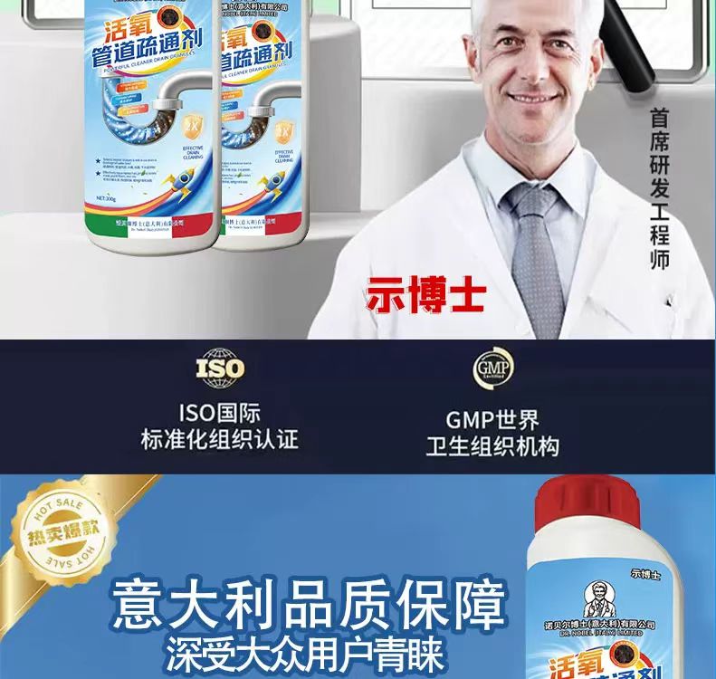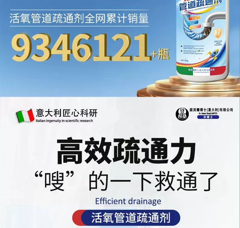 【热卖】意大利诺贝尔博士活氧疏通剂丨强力溶解油污 通下水道马桶神器 适用各种管道 59元抢6大瓶!
