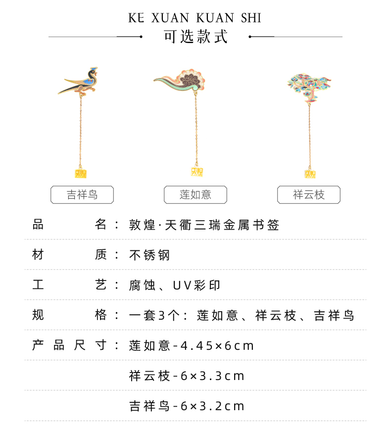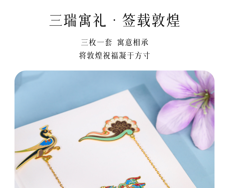 敦煌研究院 【天衢三瑞金属书签】 博物馆文创书签套装古风金属书签精致高档毕业礼物送老师同学敦煌书签纪念品