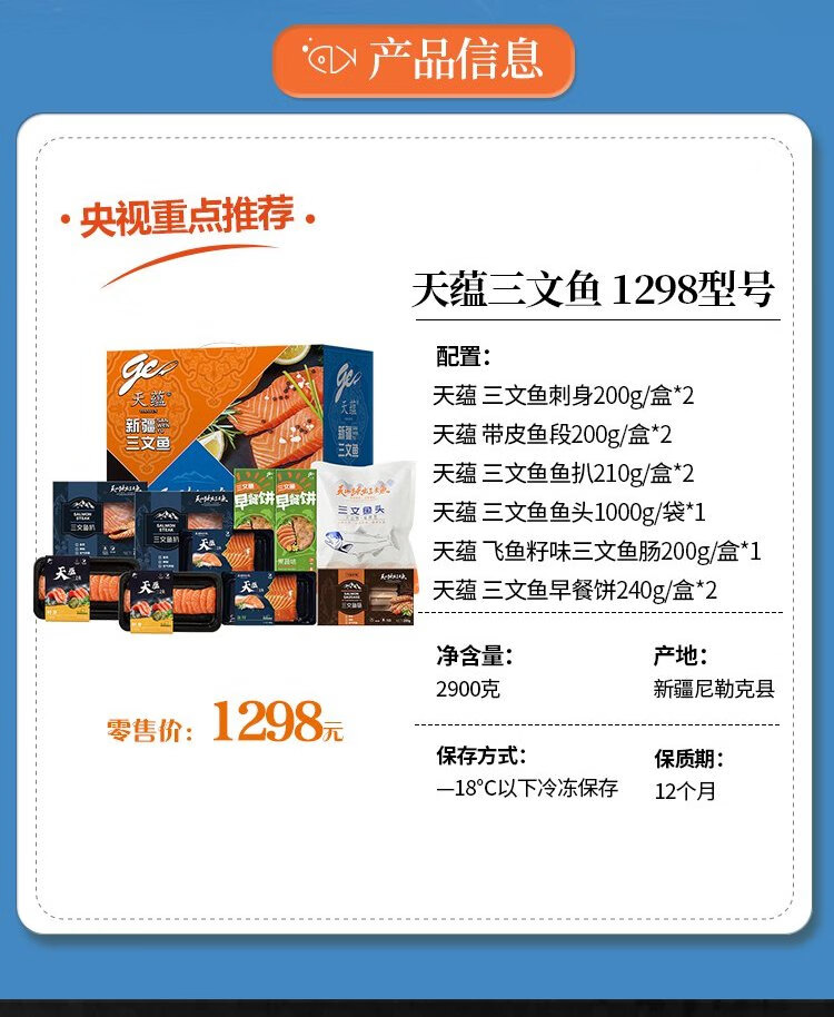 天蕴 鱼跃天山三文鱼礼盒1298型2900g