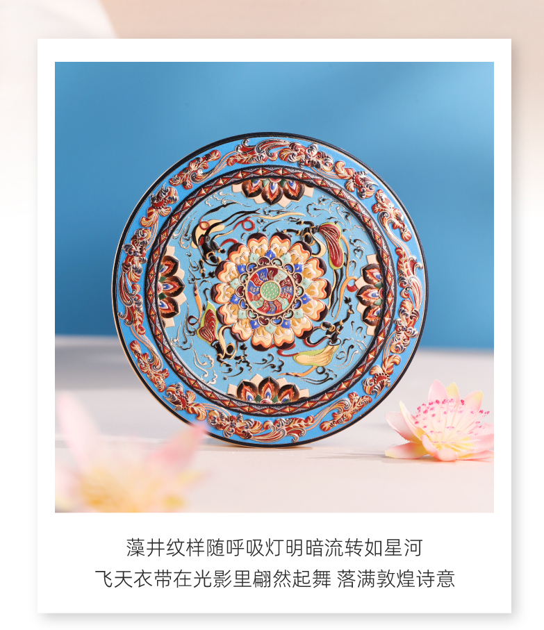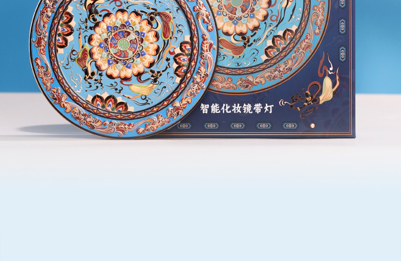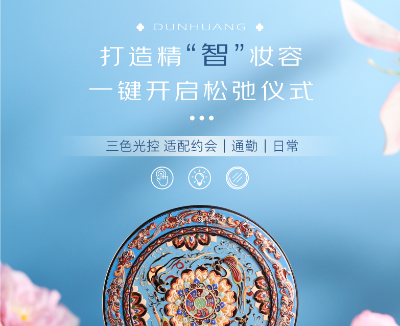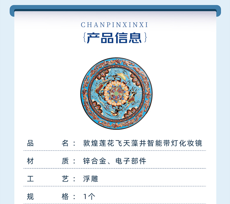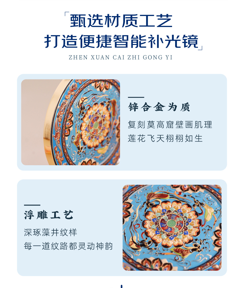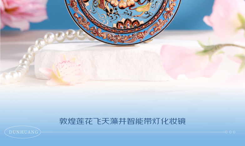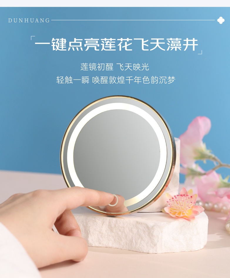 敦煌研究院 【莲花飞天藻井智能带灯化妆镜 】便携补妆镜手持随身镜