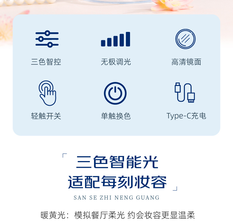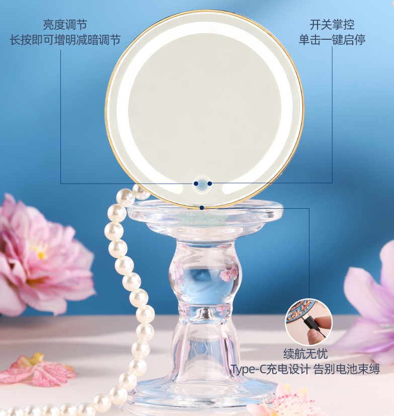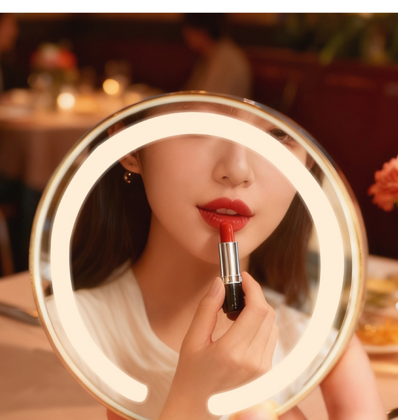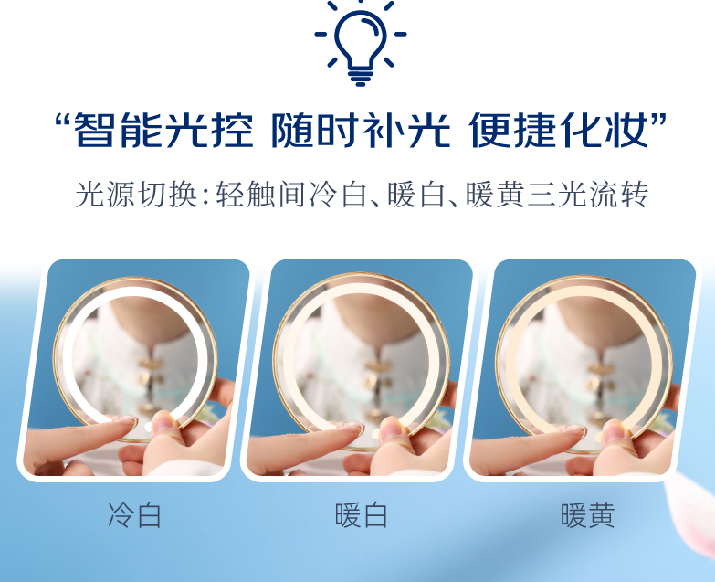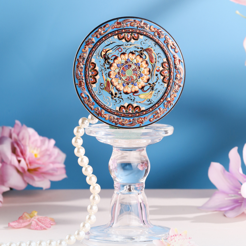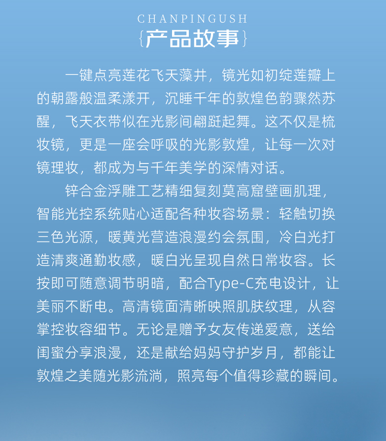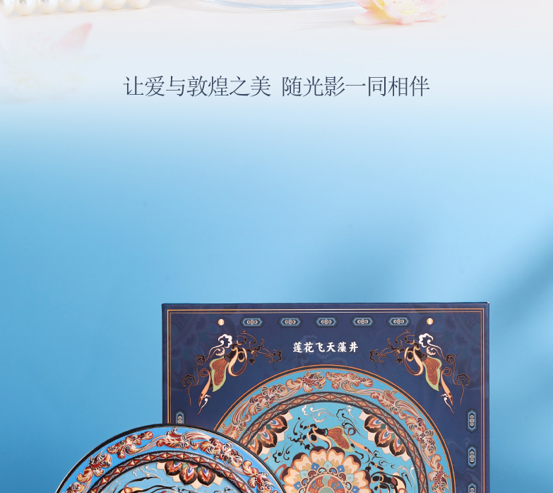 敦煌研究院 【莲花飞天藻井智能带灯化妆镜 】便携补妆镜手持随身镜