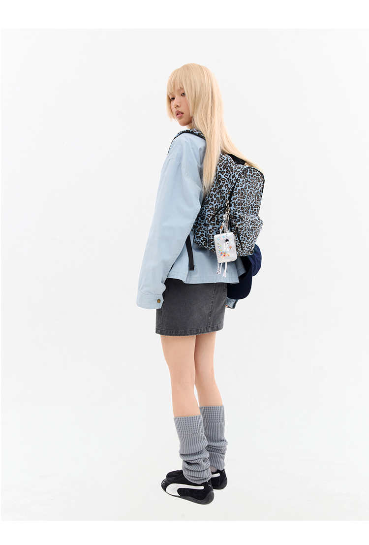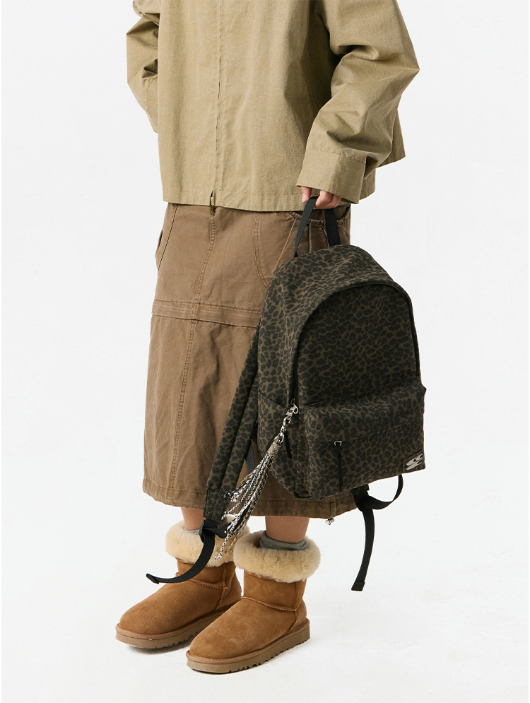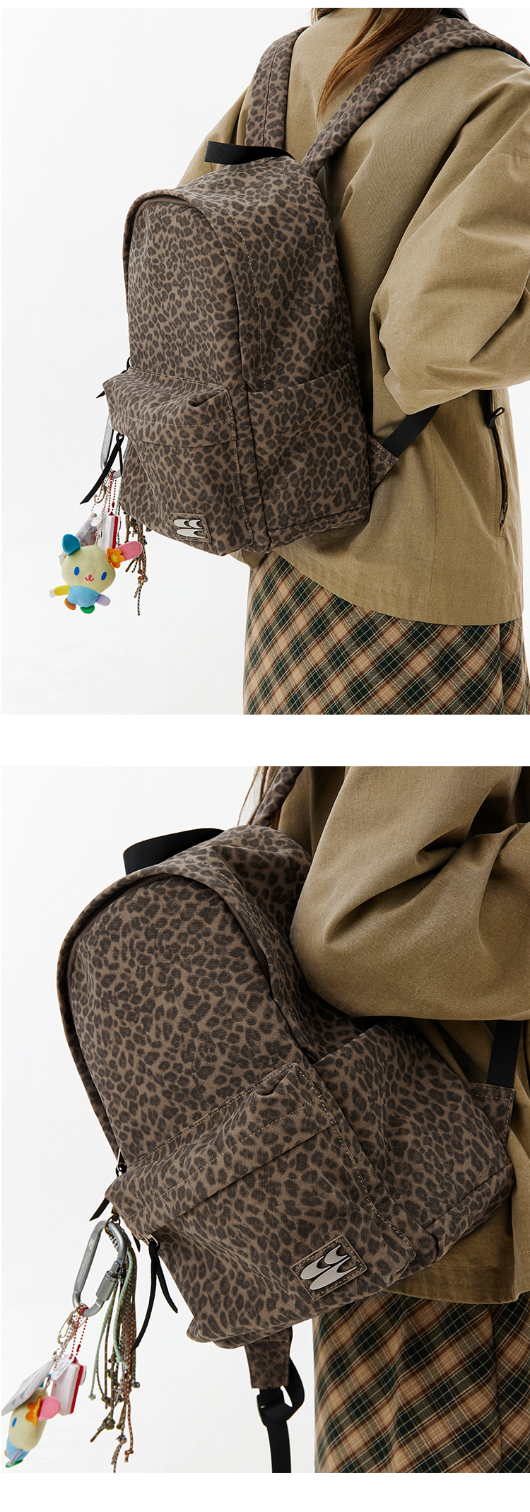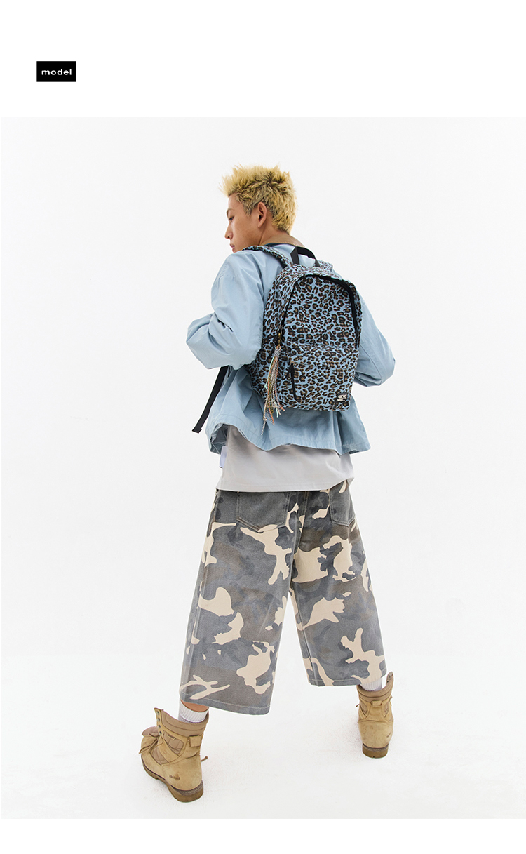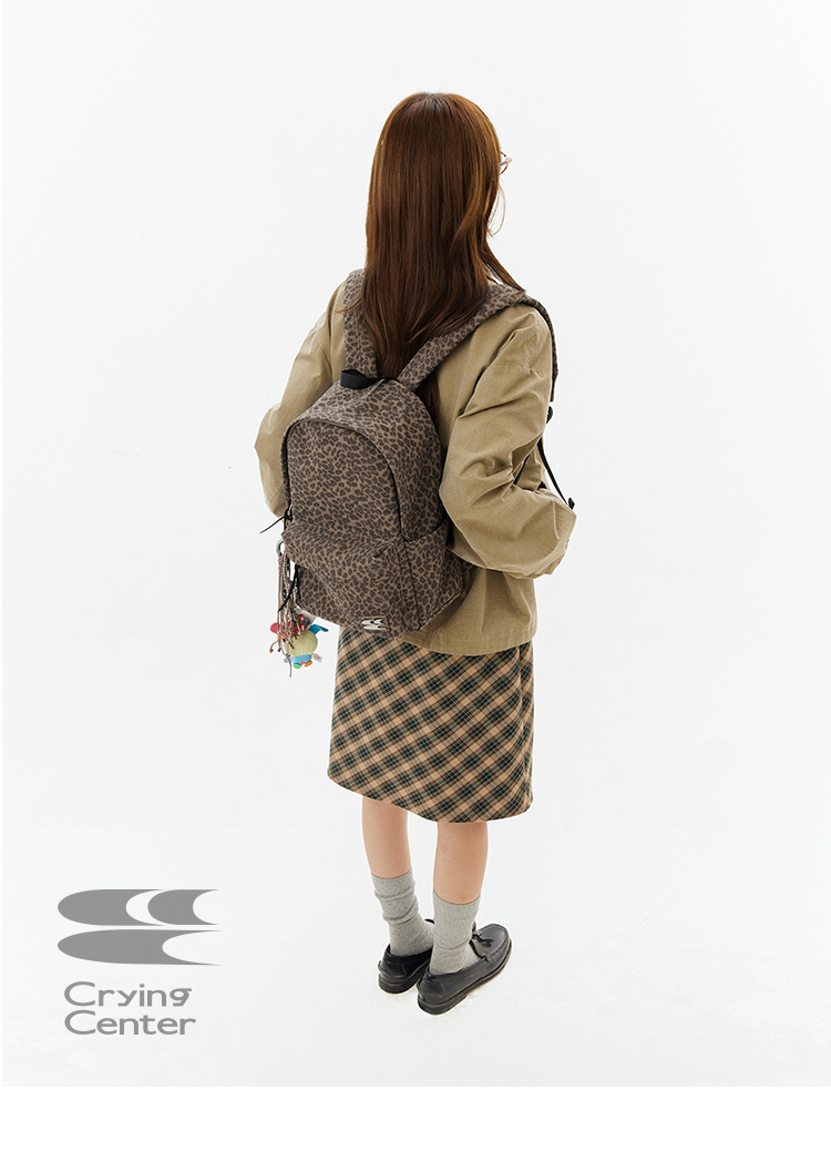 CryingCenter 蓝豹纹双肩背包 棕色皮质豹纹书包 哭喊中心