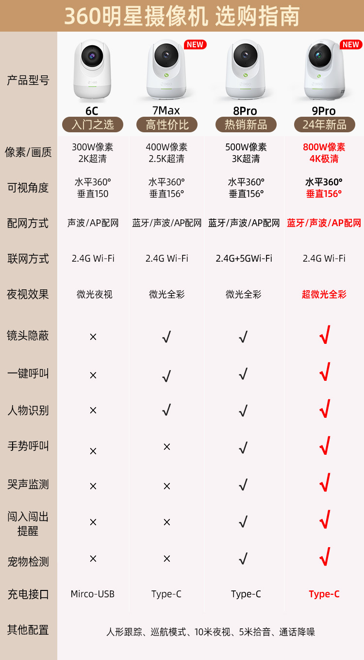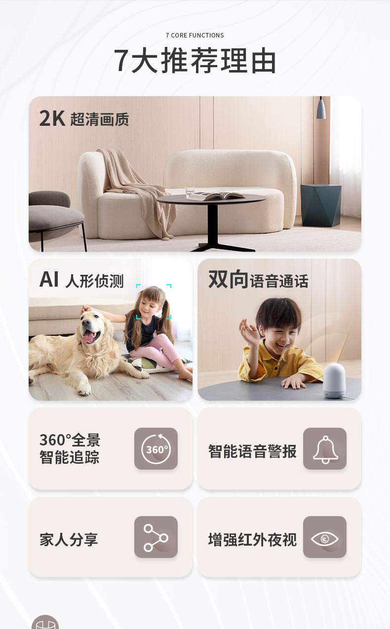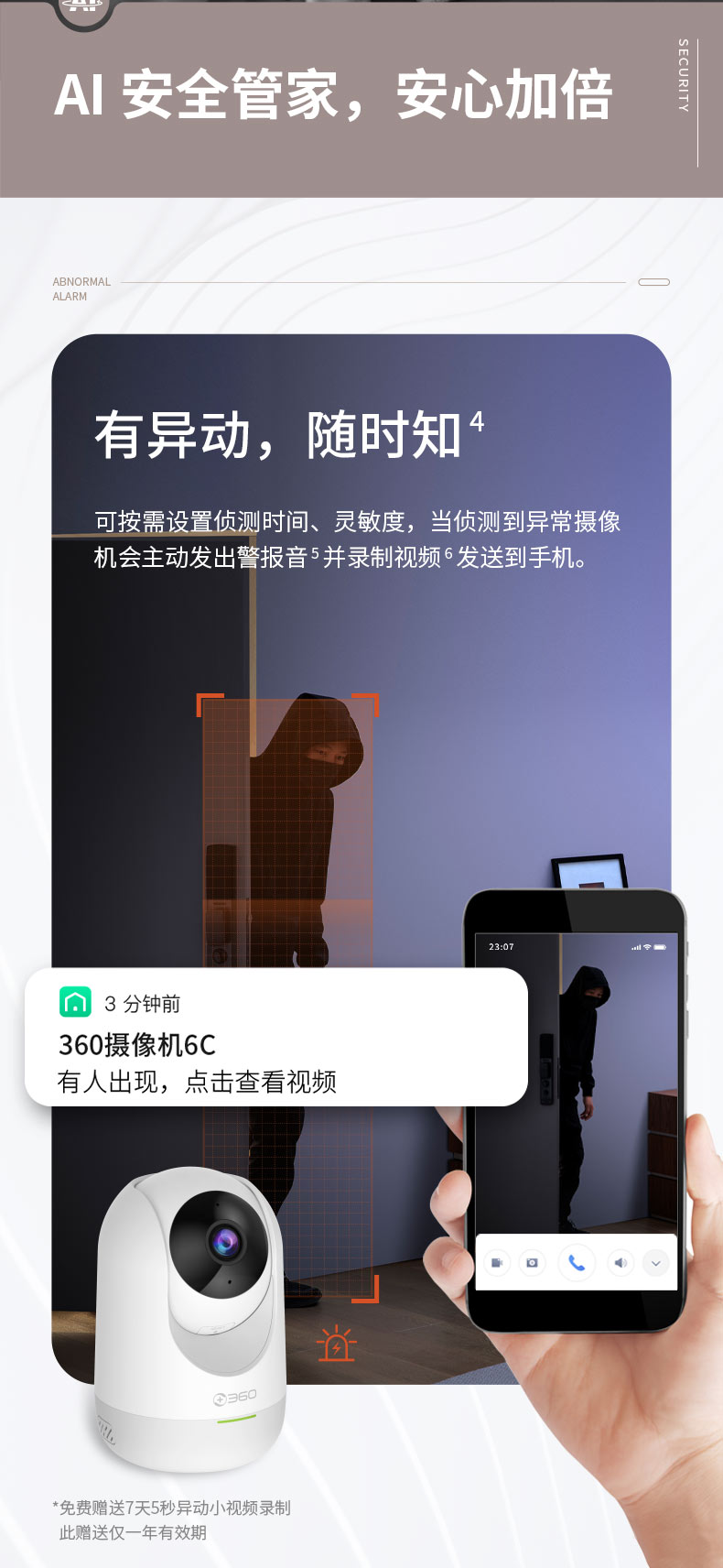 【超值】360 家用监控摄像头智能摄像机 2K云台版300万网络wifi高清微光全彩双向通话360度旋转 云台6C