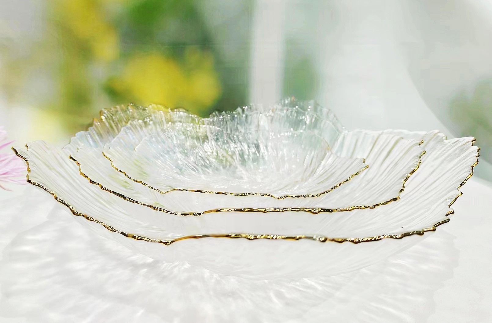 戴德生活馆玻璃果盘轻奢客厅茶几沙拉碗金边花瓣精致水果盘
