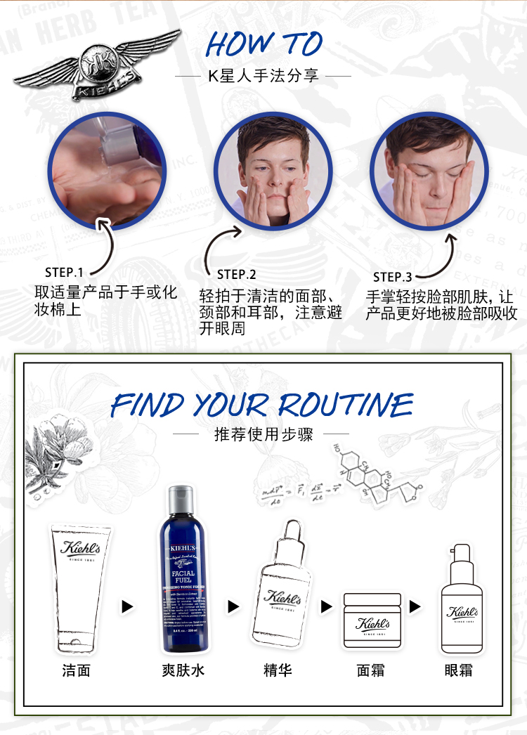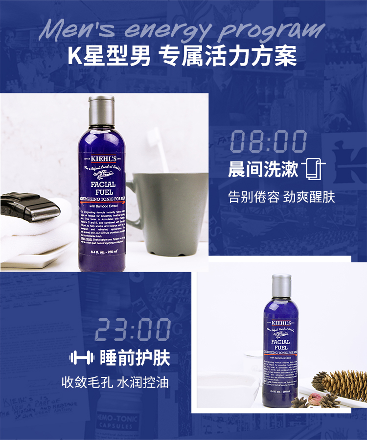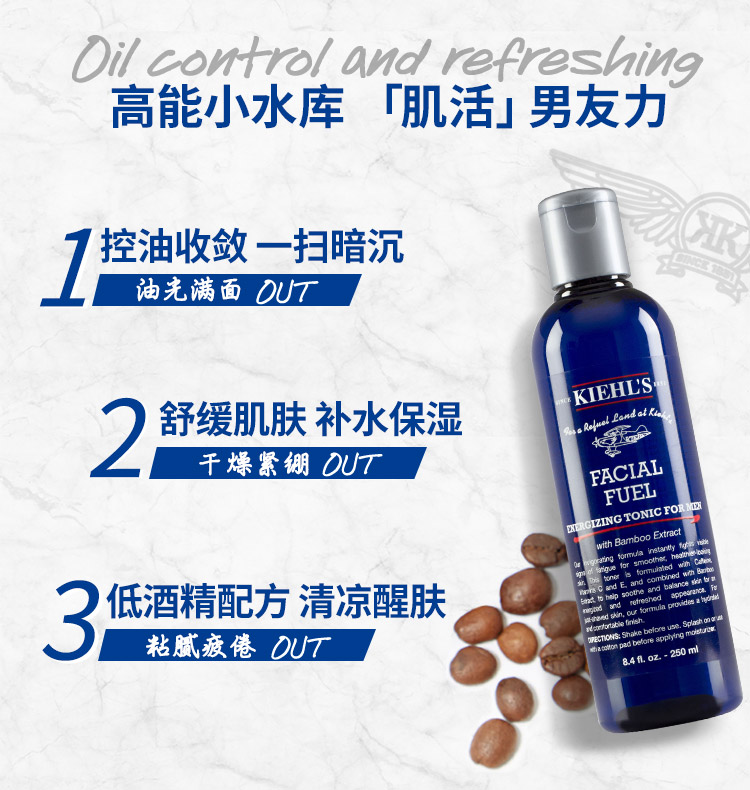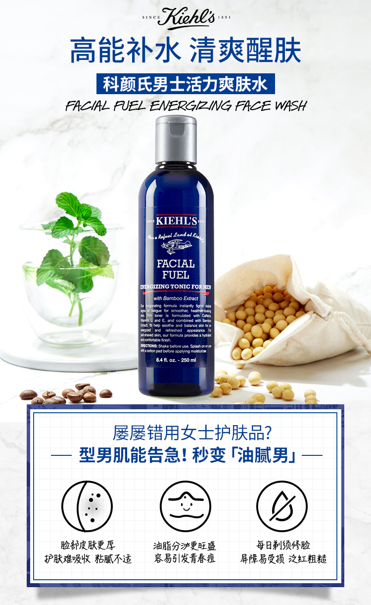 【精选包邮】正品科颜氏(Kiehl's)男士活力爽肤水250ml清爽保湿补水舒缓呵护控油收缩毛孔 心选到家