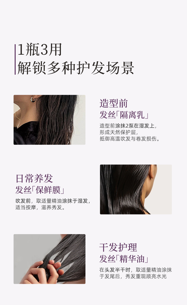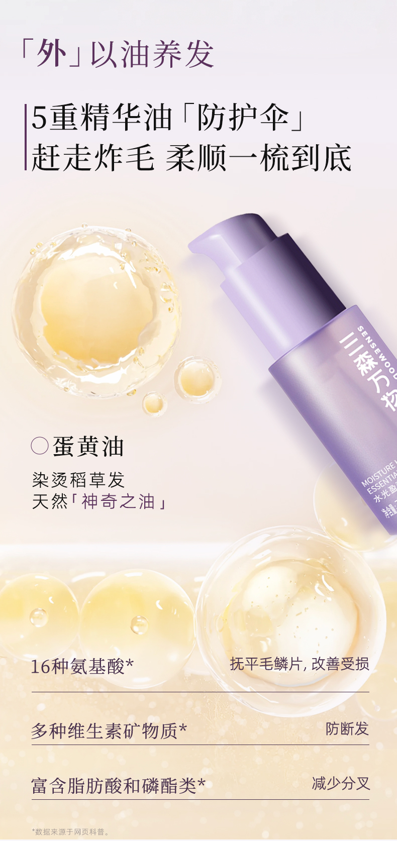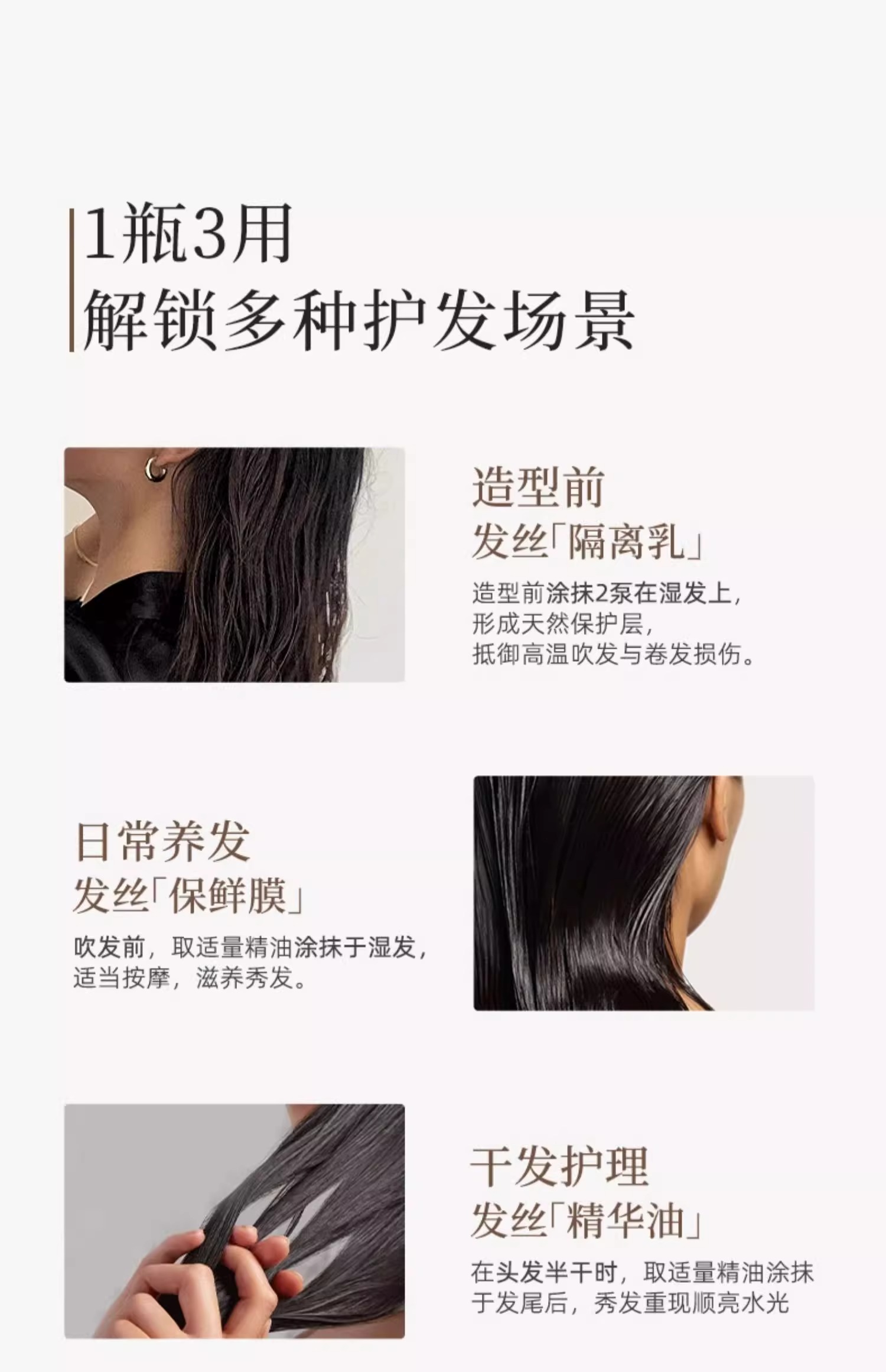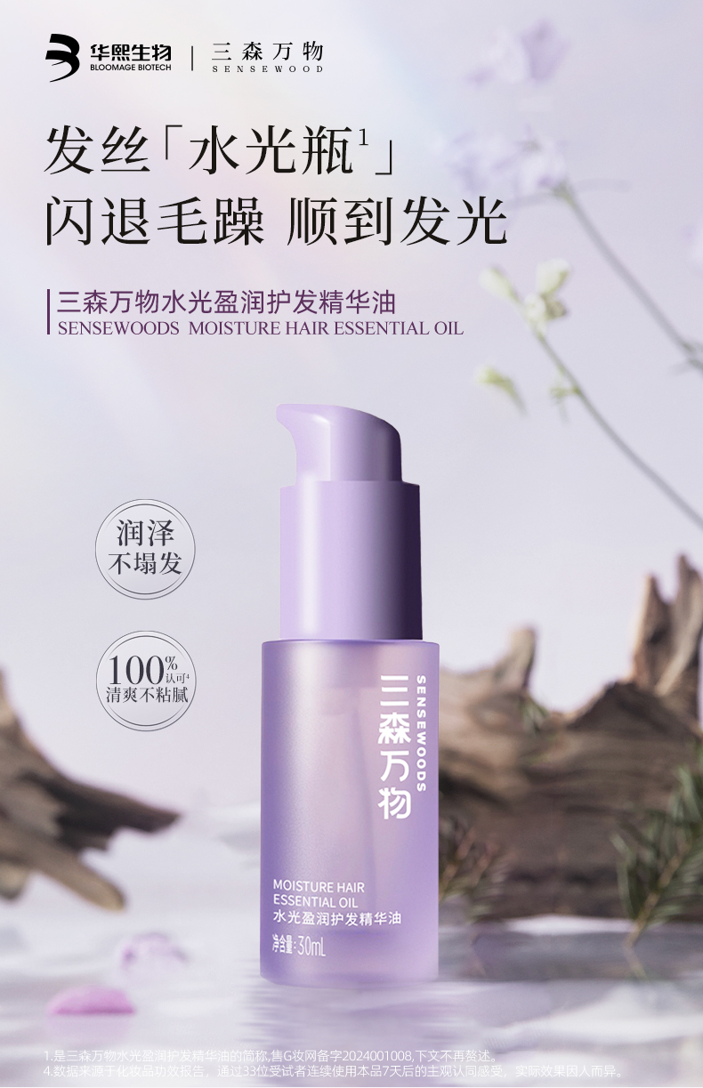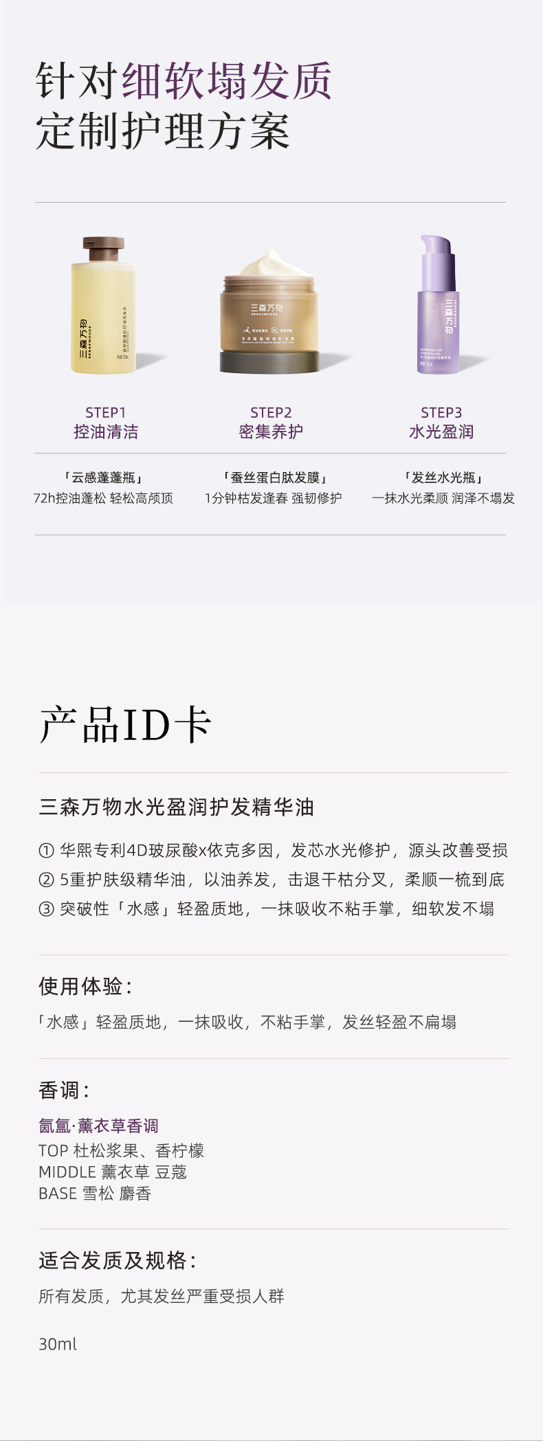 【两瓶装送气垫梳】华熙生物三森万物水光奢润/盈润护发精华油30ml*2+赠品牌气垫梳*1 亮泽修护养发 品牌直发
