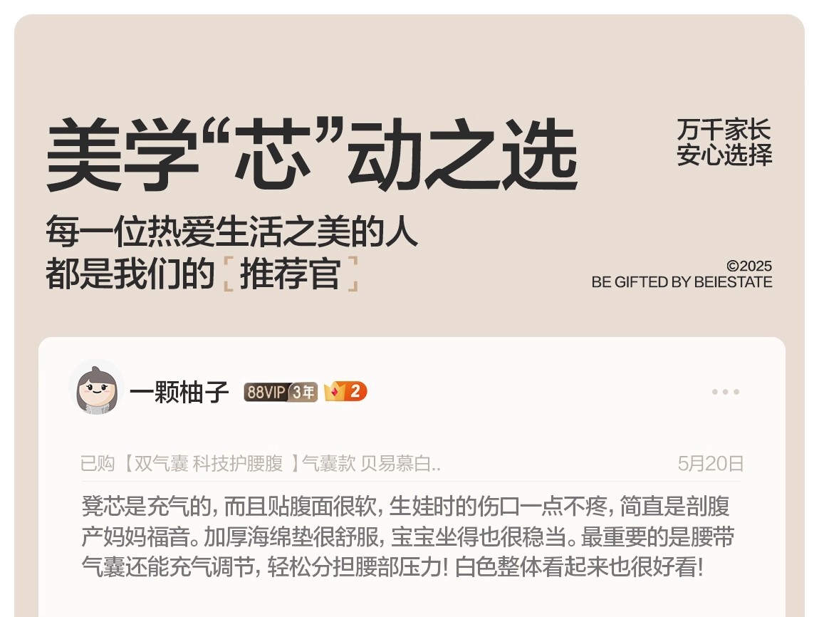 - 「BEIESTATE贝易」以极简设计为风格,主打兼顾设计、品 质和性价比的母婴产品,以创造极致细腻、不张扬、 不世俗的当代母婴用具,为用户日常亲子生活与幼儿 的启蒙早教提供新选择。