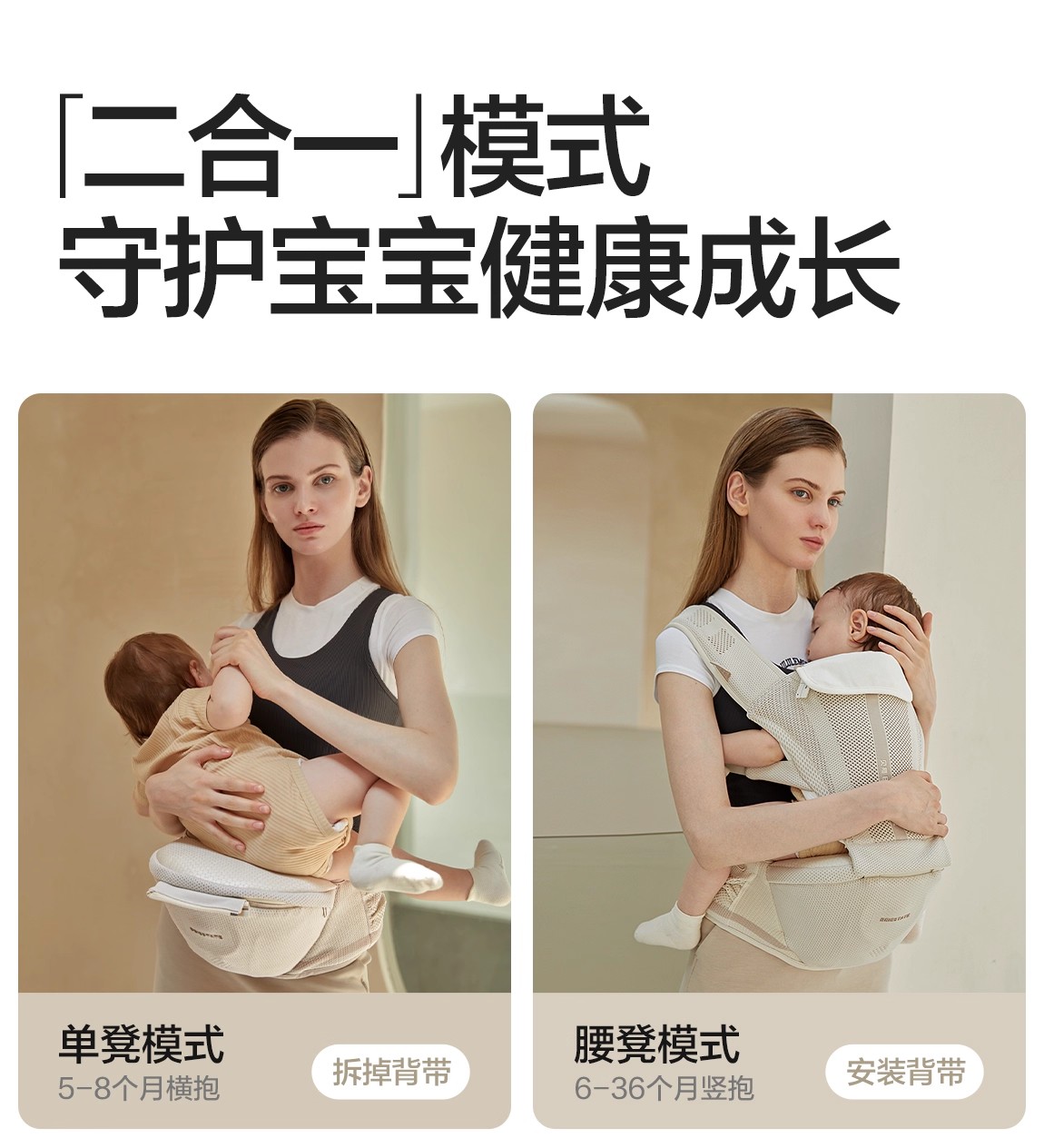 贝易气囊腰凳背带二合一婴儿宝宝轻便四季透气多功能抱娃外出神器【会员下单送:宇航员早教机,享气囊质保1年】