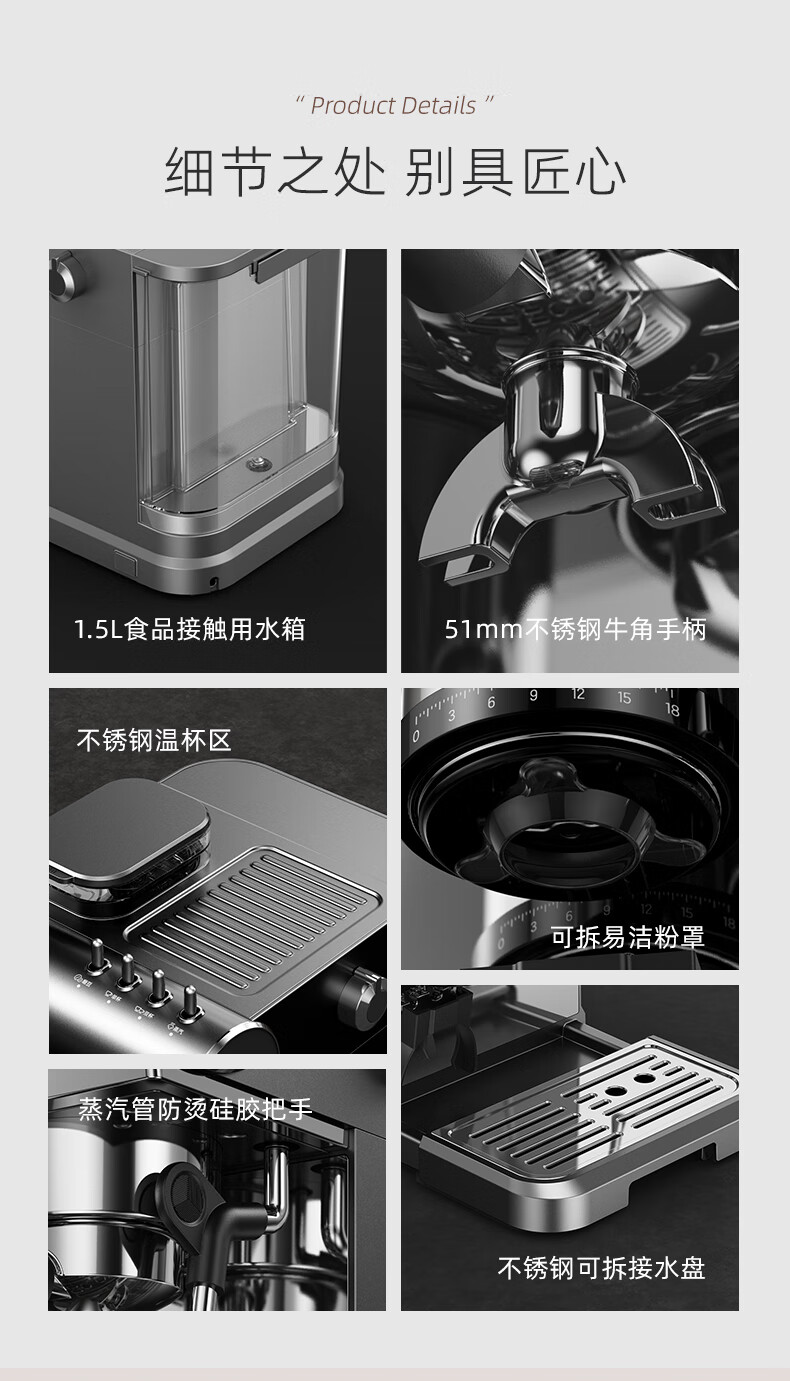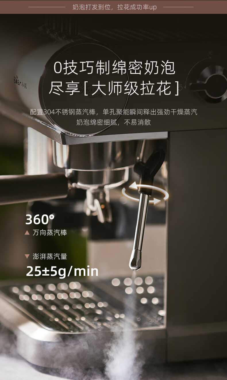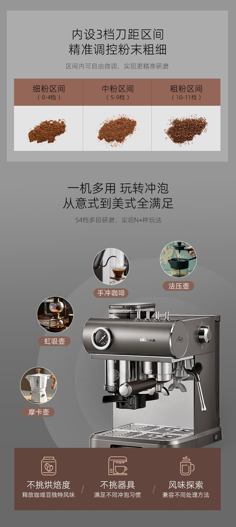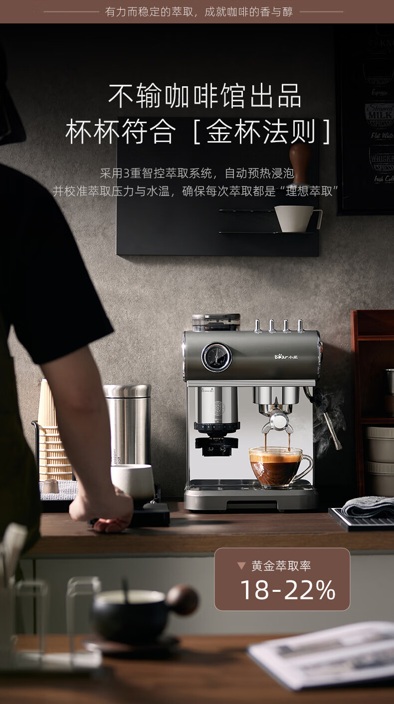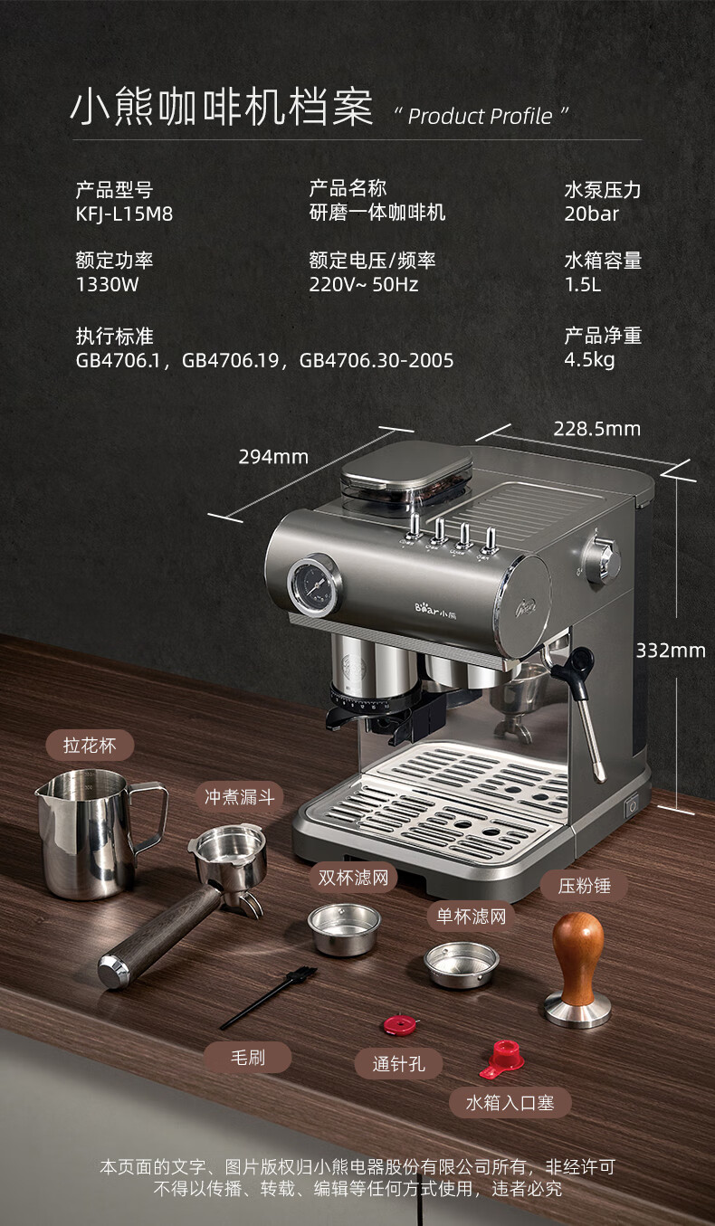 小熊(Bear)咖啡机 意式半自动家用机械舱咖啡机 *研磨一体机 现磨咖啡豆蒸汽奶泡 KFJ-L15M8