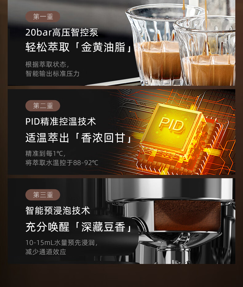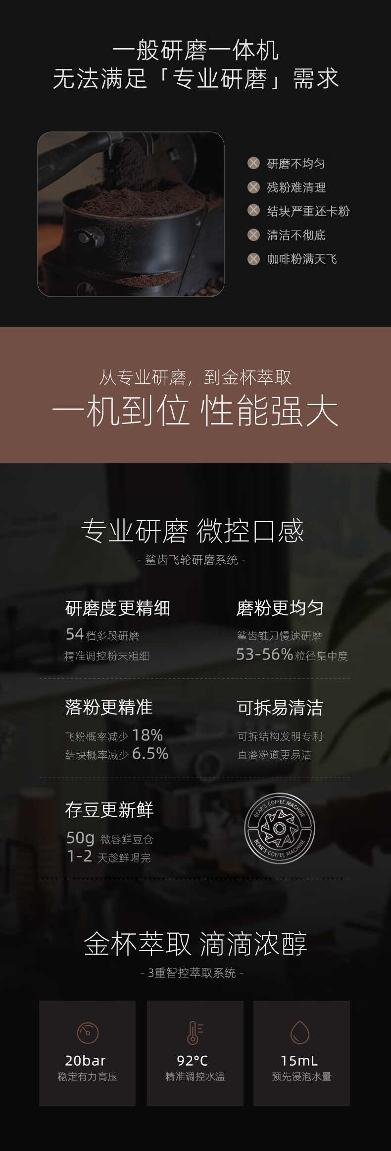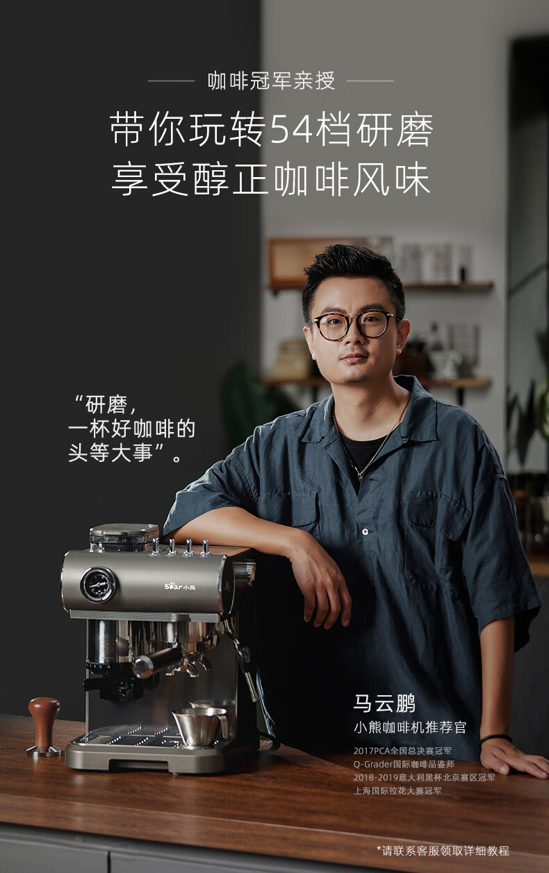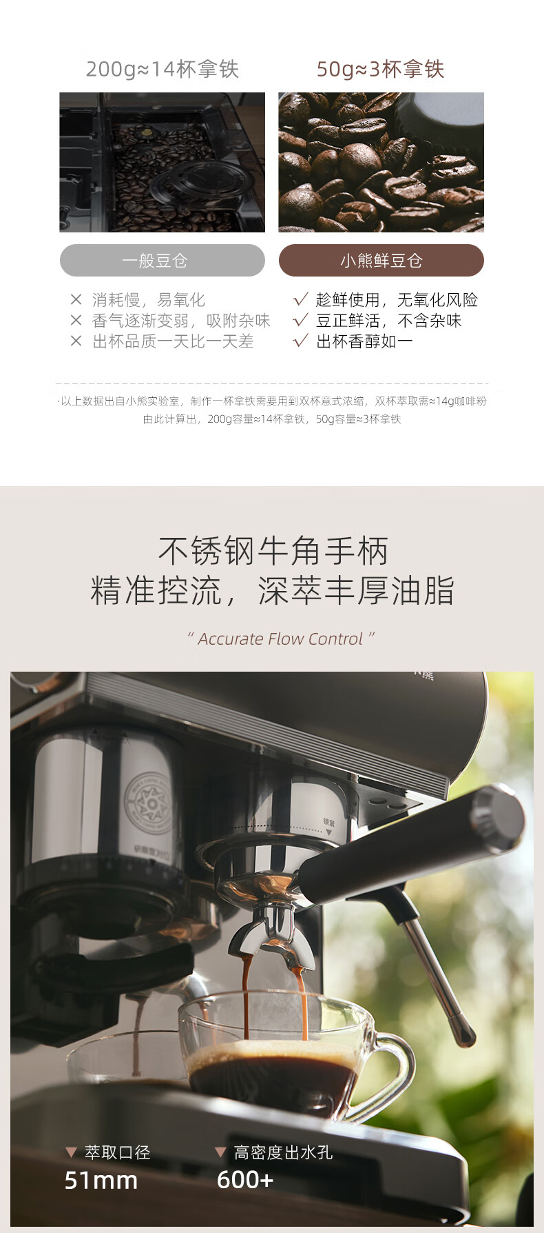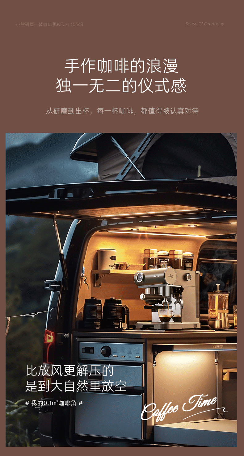 小熊(Bear)咖啡机 意式半自动家用机械舱咖啡机 *研磨一体机 现磨咖啡豆蒸汽奶泡 KFJ-L15M8
