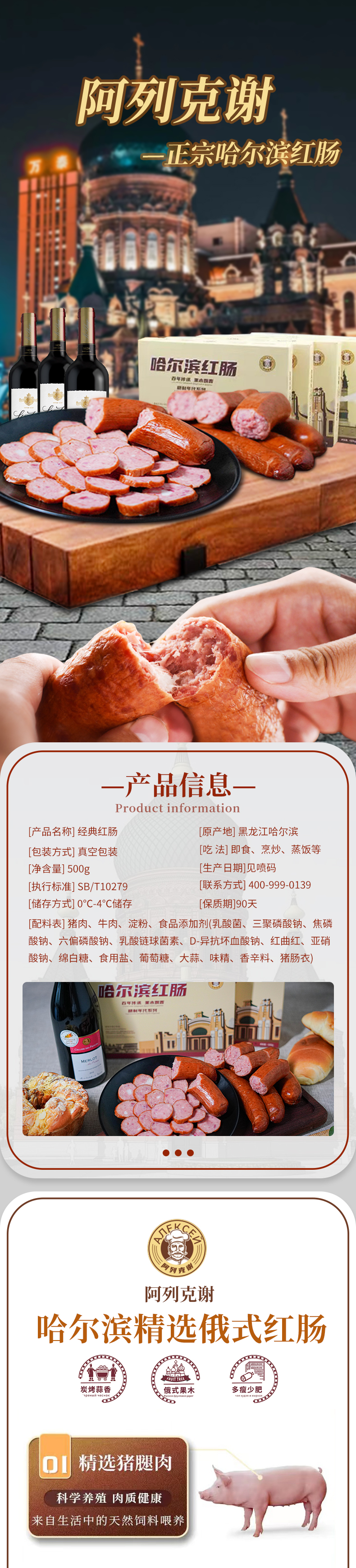 【GJ链接请勿用!!!】【哈尔滨红肠】拒绝鸡肉 风味正宗 老炉熏制 协会认证 买3斤赠2斤。