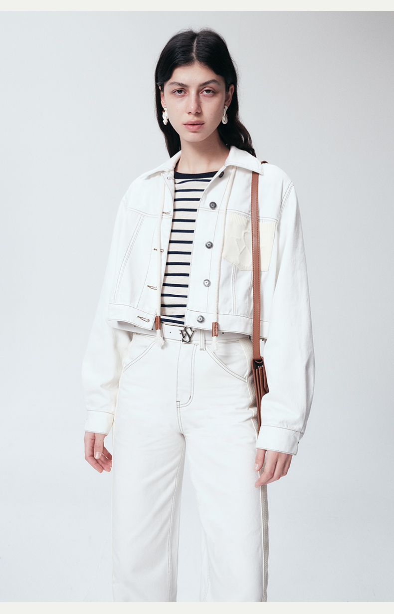 SELFWHO 纯棉牛仔外套女2024新款春小个子设计感百搭短款夹克上衣