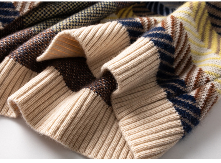 羊绒老钱风常规拼接纯色女士小香风针织上衣
