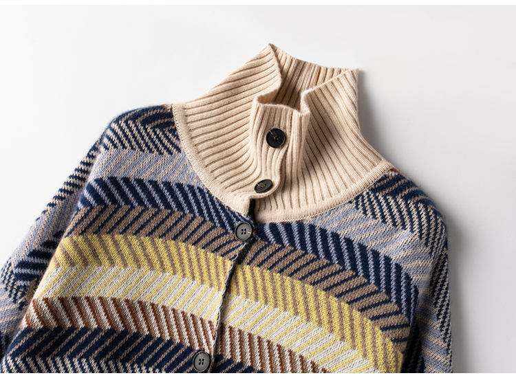北美小动物系列~半高领双拉链开衫毛衣女宽松加厚外套XDW250502