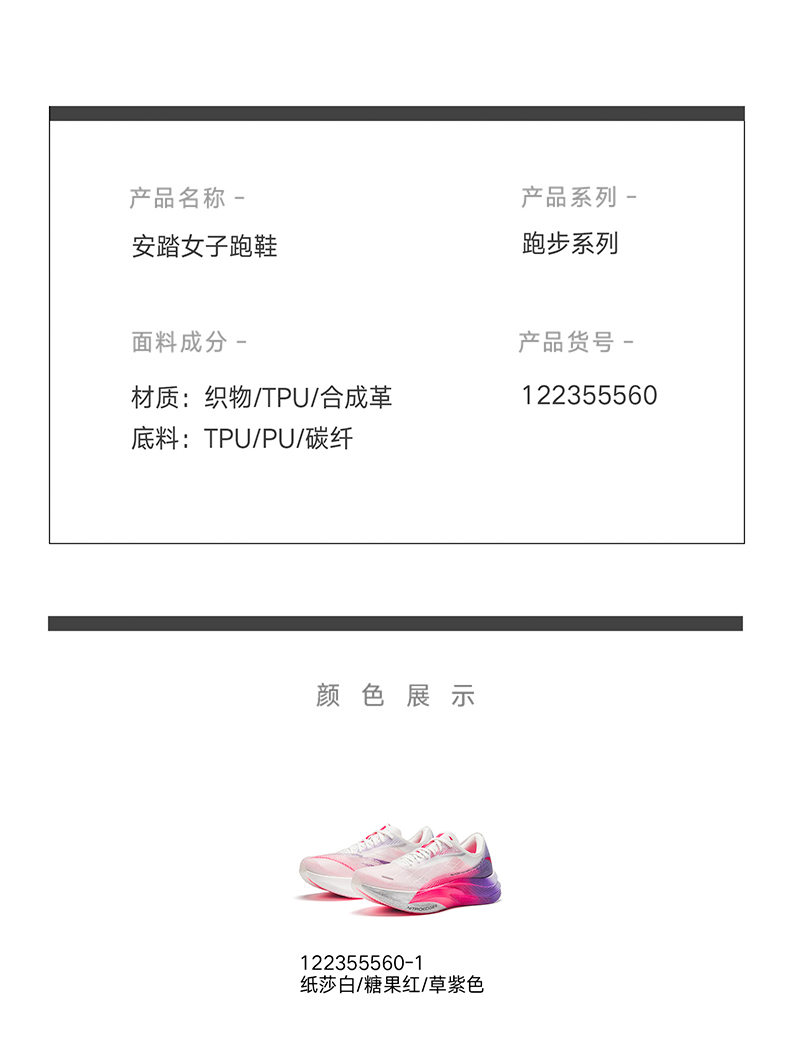 【马拉松】安踏C202 5 GT竞速训练系列女子跑鞋122355560