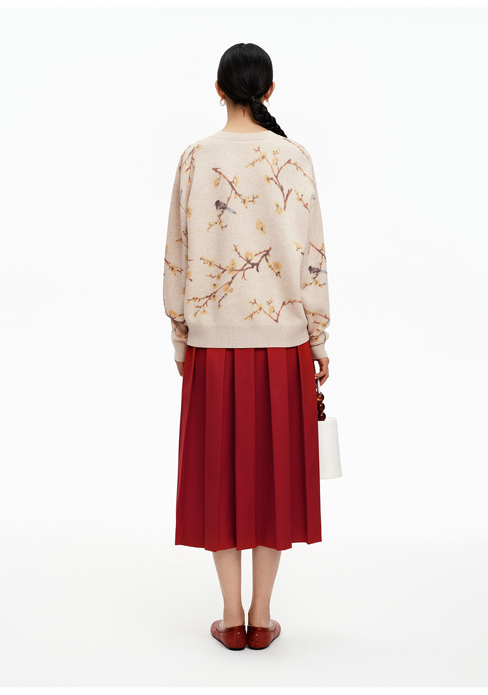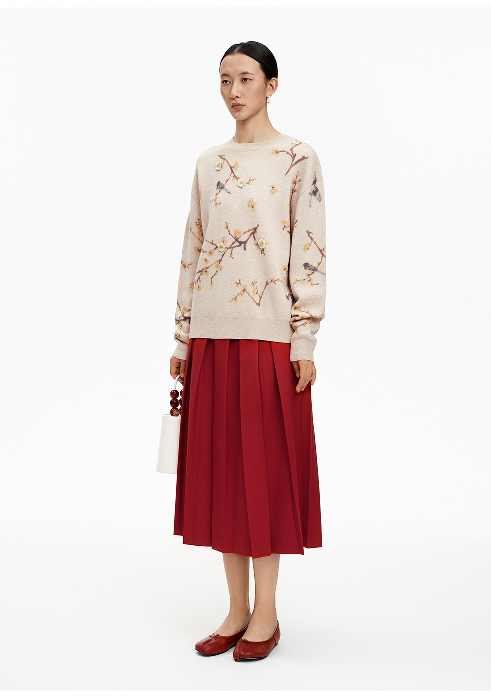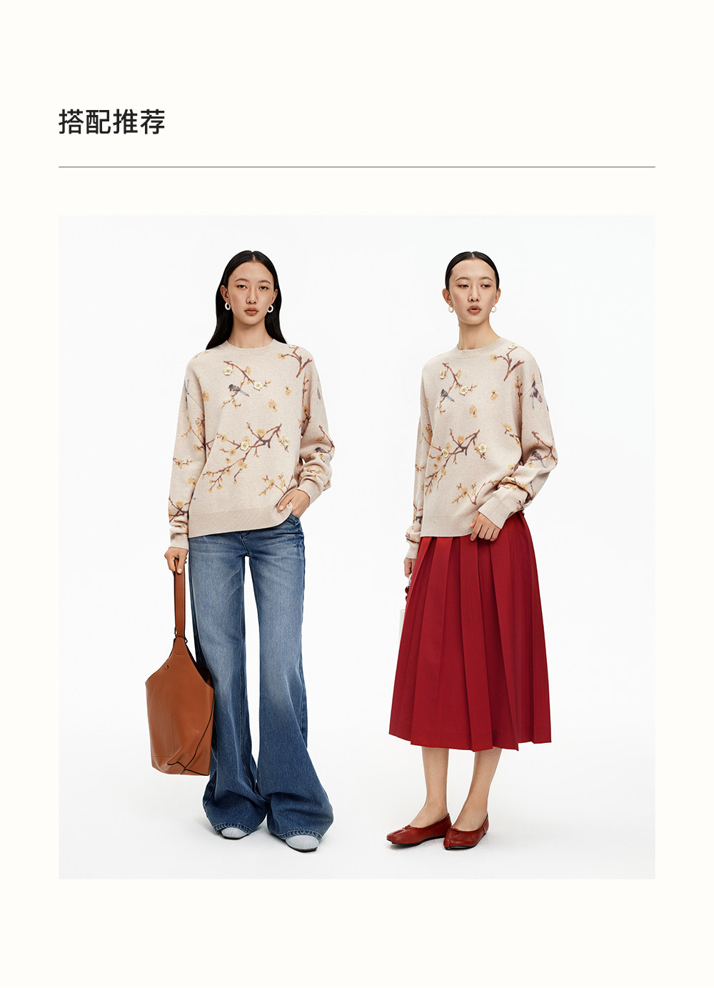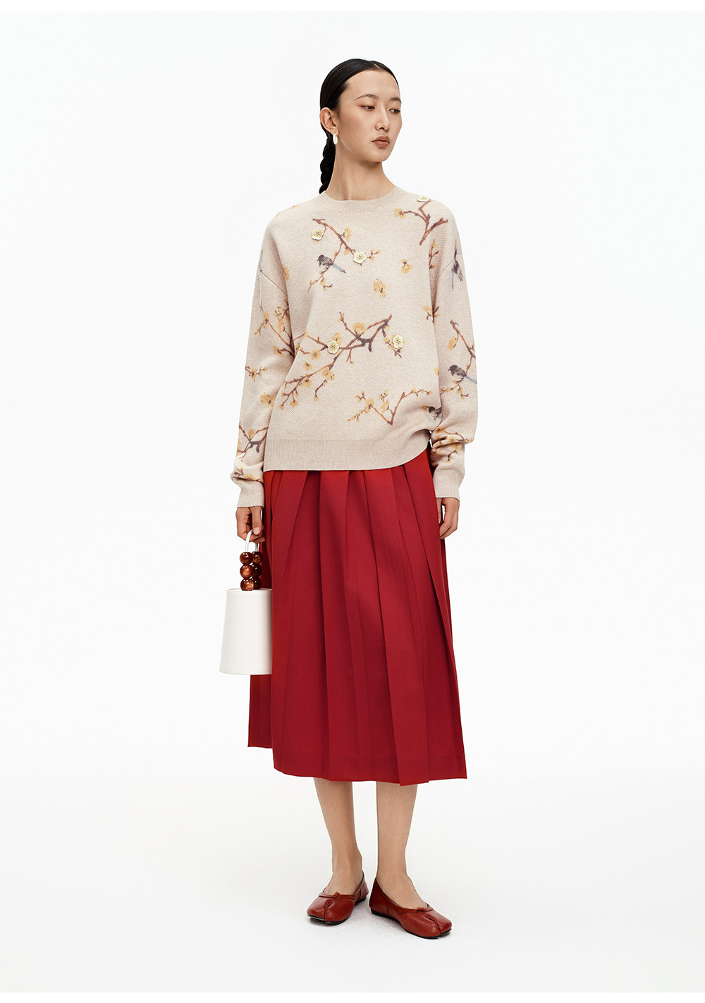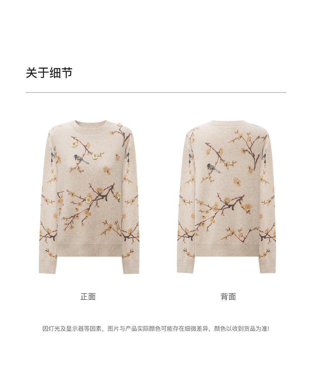 SELFWHO绵羊毛混纺新中式梅花装饰毛衣女2025冬新款直筒针织上衣
