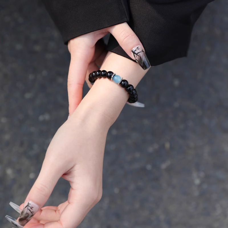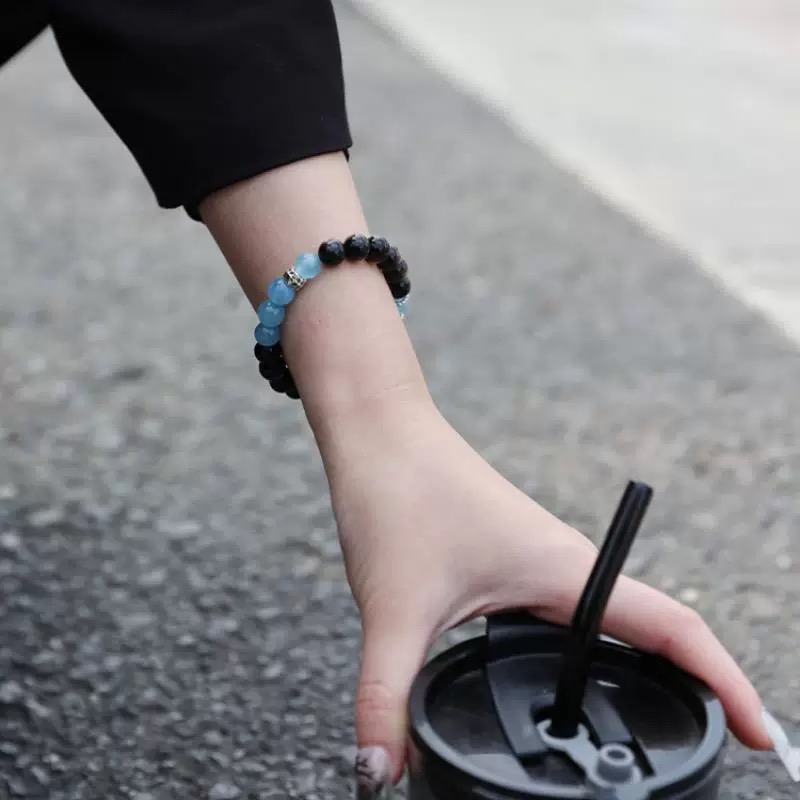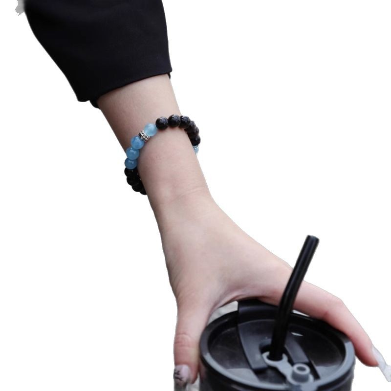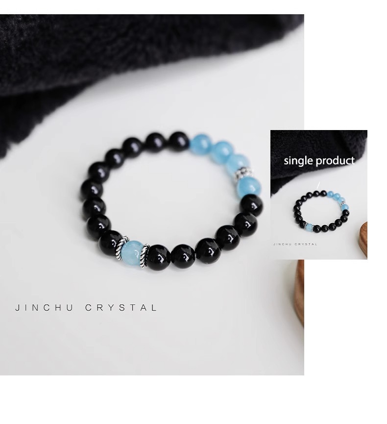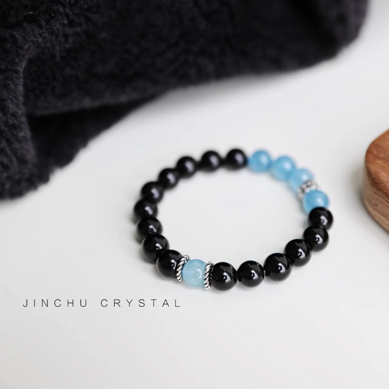 【敦煌海蓝秘境·海蓝宝黑曜石手串】黑曜石海蓝宝手串女 手链男转运珠平安水晶男生情侣小众黑曜石