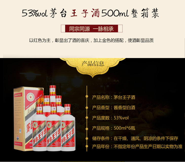 【2019年原箱】茅台股份 普王子 53度 500ml x6 整箱