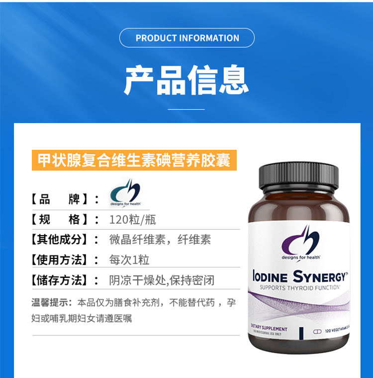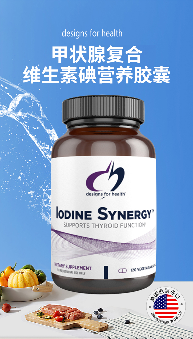 【效期至27年3月】甲状xian复合维生素碘营养胶囊 design for health Iodine Synergy 120粒/瓶