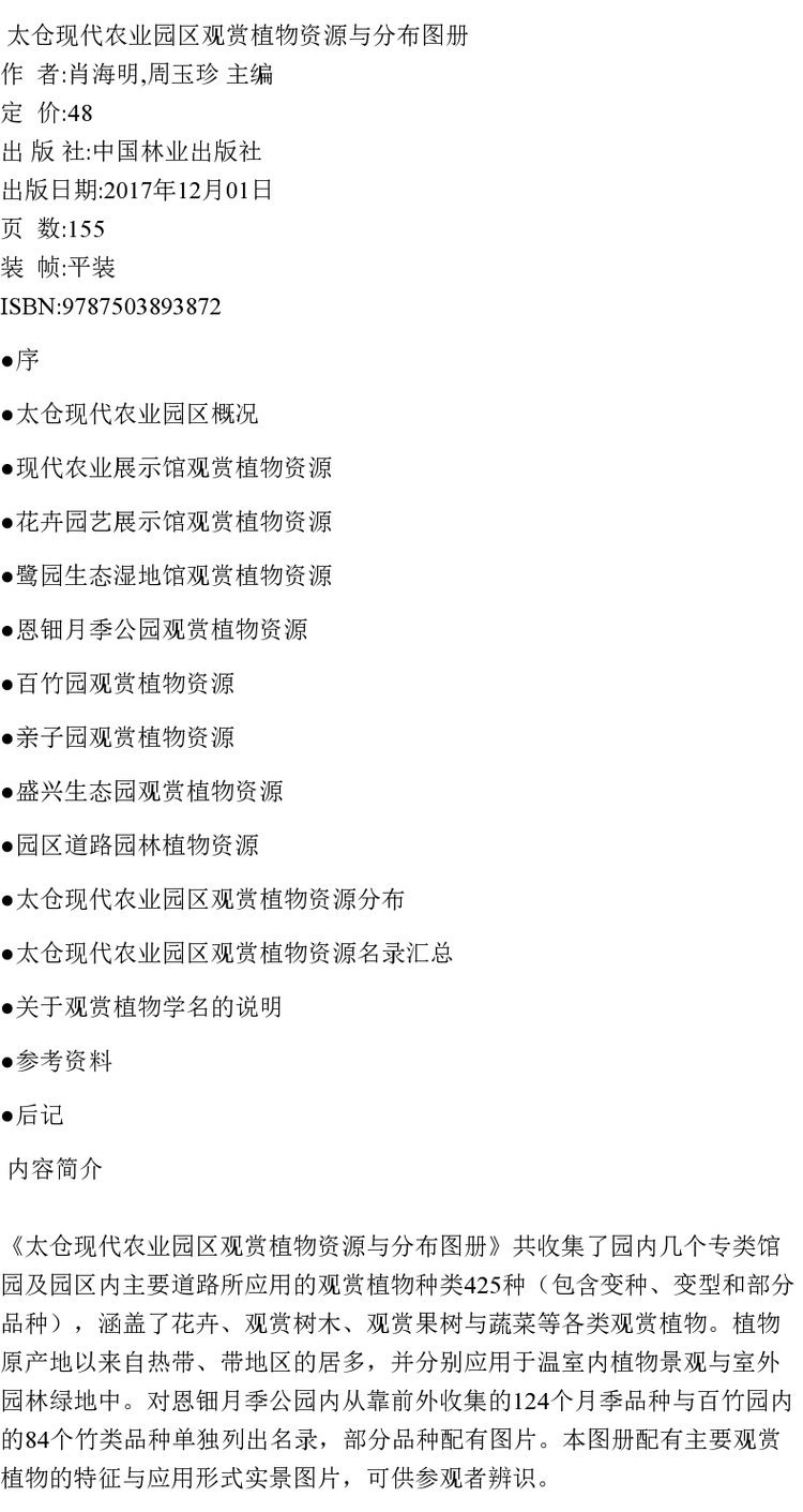 太仓现代农业园区观赏植物资源与分布图册 9387 中国林业出版社 畅销书