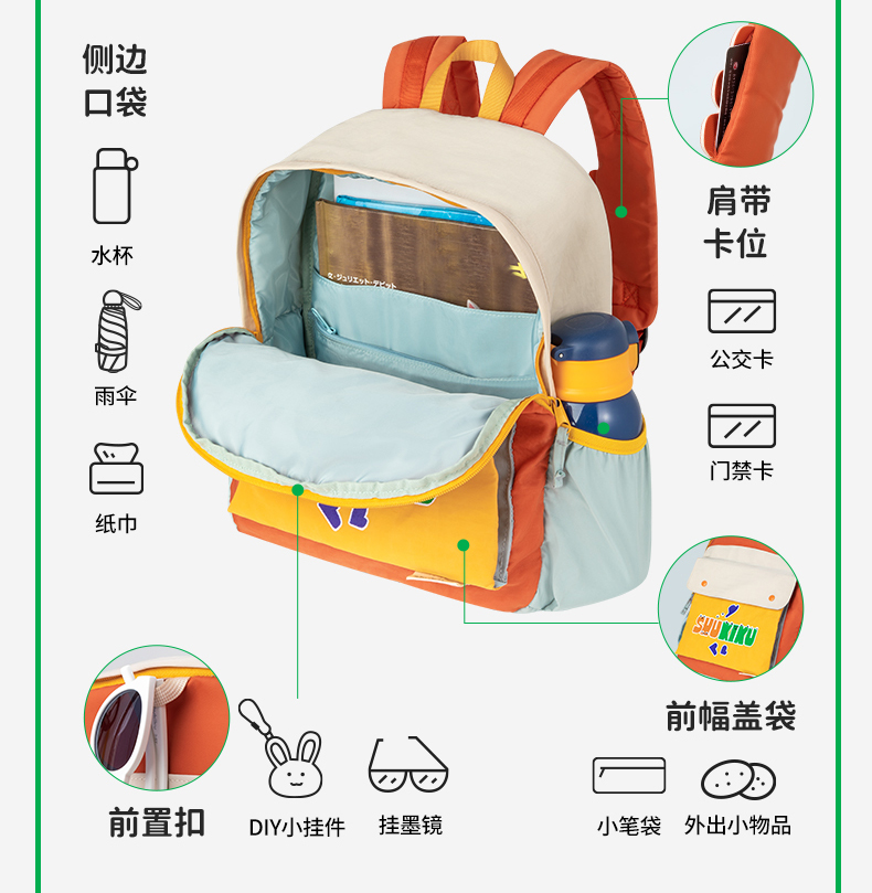 shukiku 趣味刺绣儿童双肩包 橘黄色 S