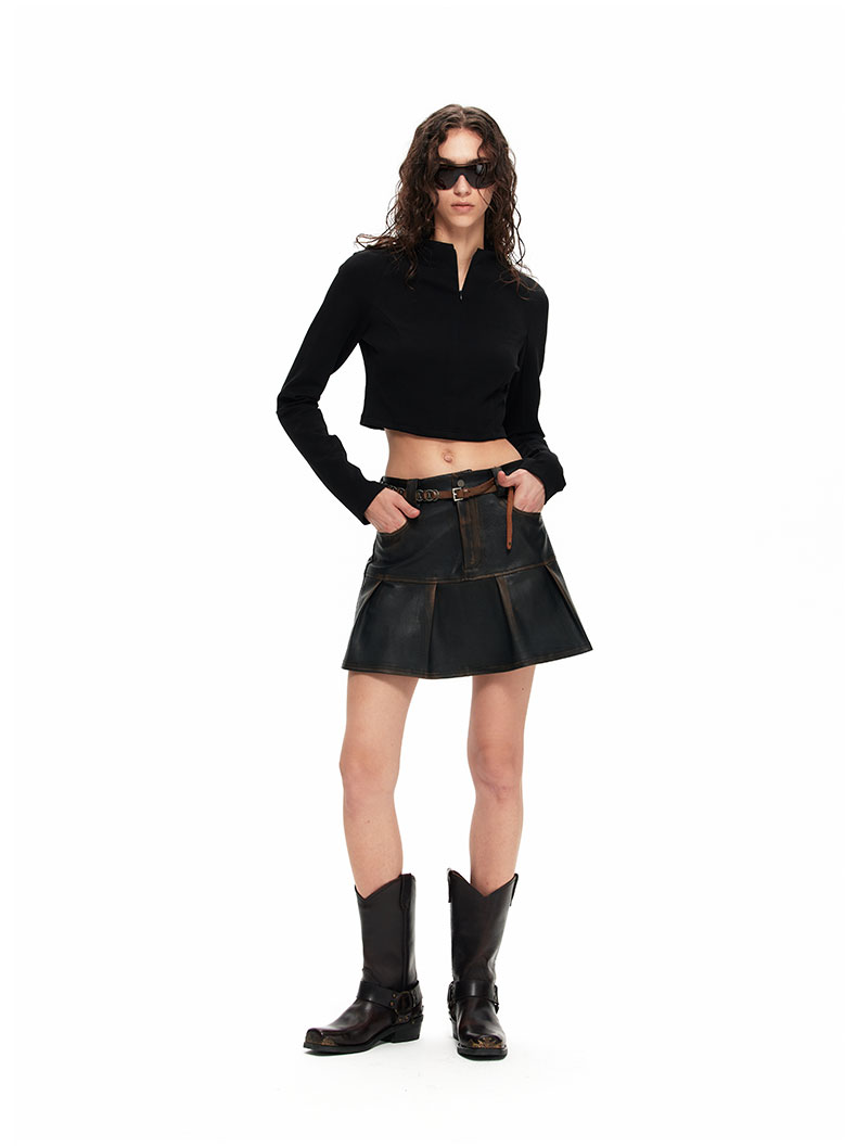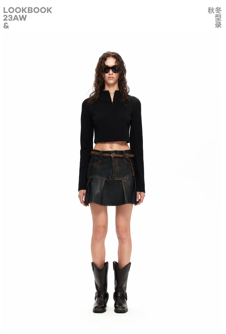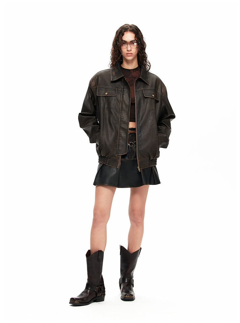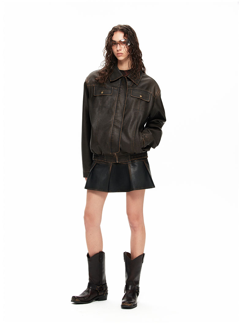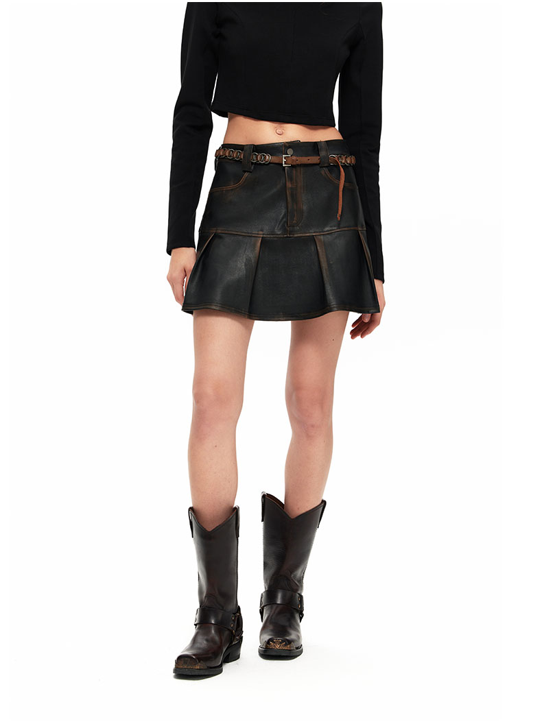 NUTH“皮革短裙”|做旧洗褪棕色半身裙复古小众设计皮短裙