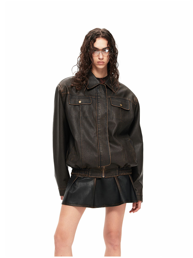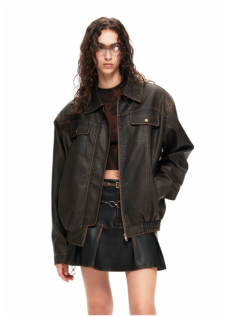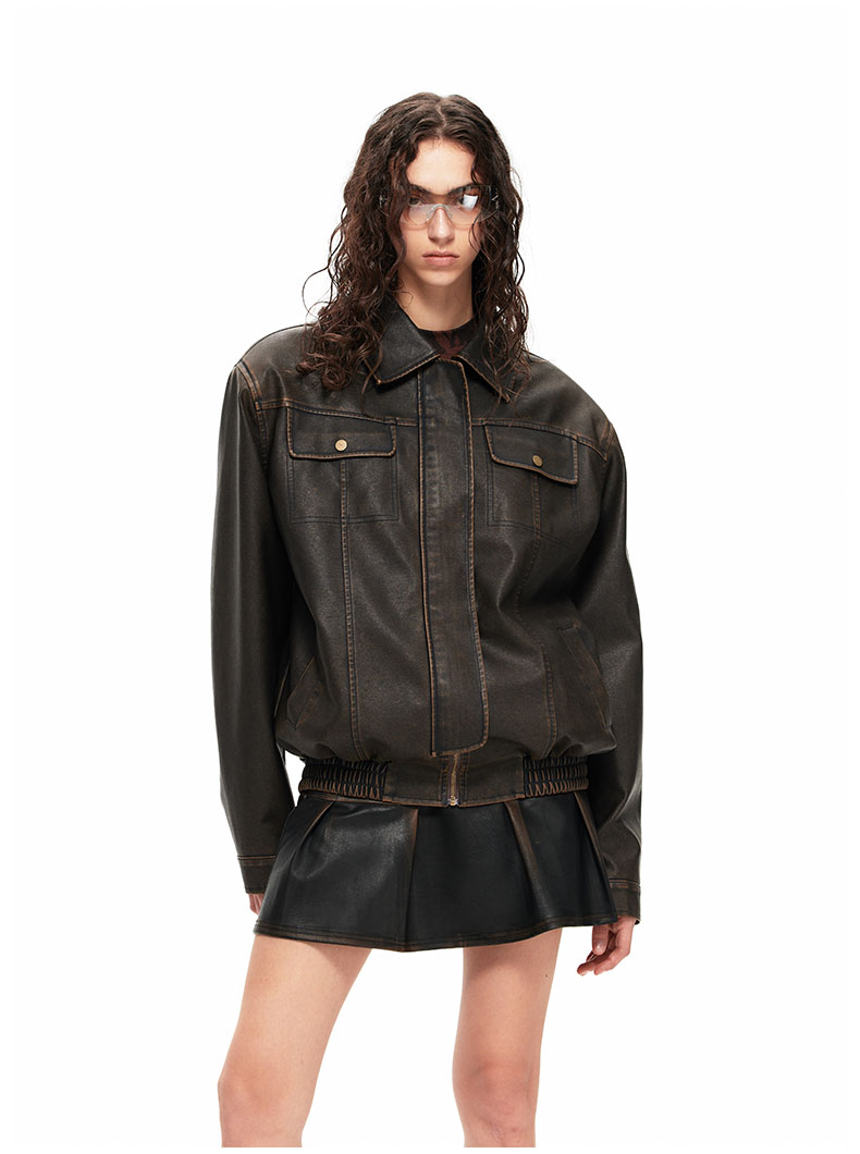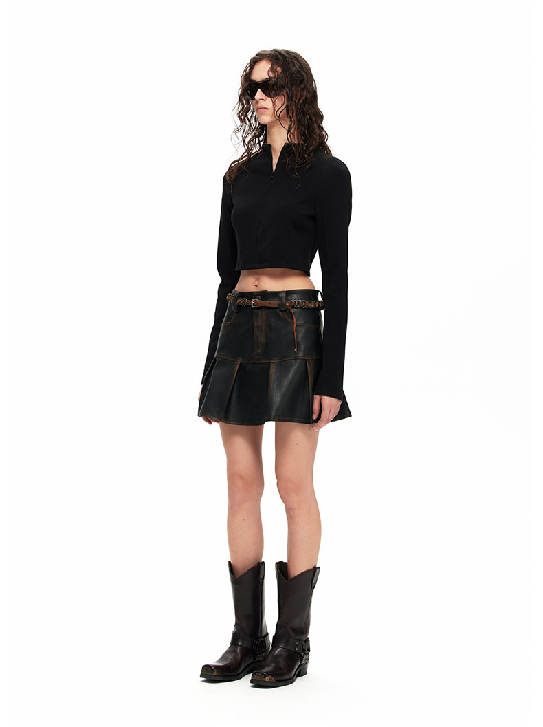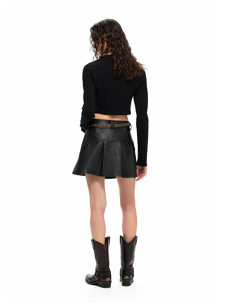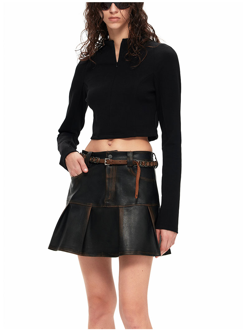 NUTH“皮革短裙”|做旧洗褪棕色半身裙复古小众设计皮短裙