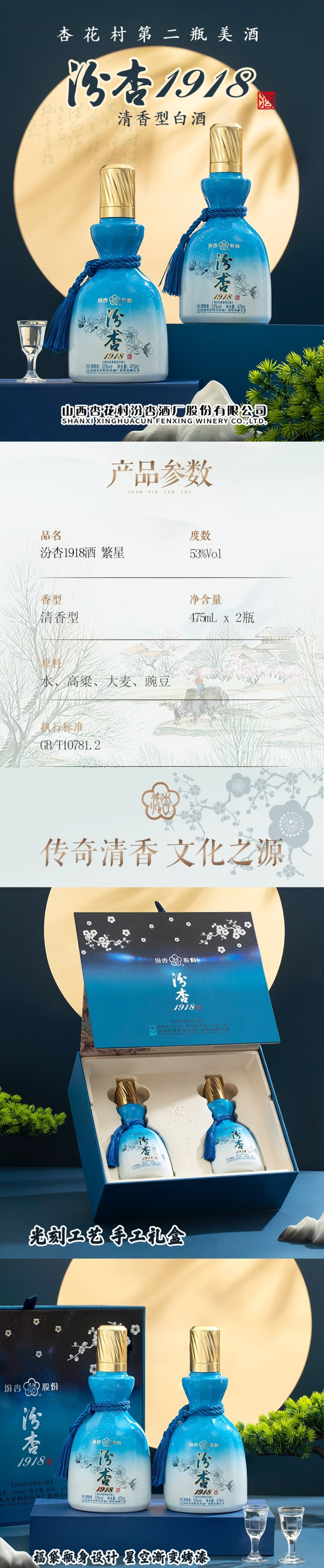 【原箱秒杀】汾杏 1918 繁星 清香型 475ml*2x3【整箱】