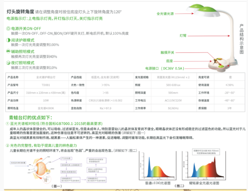 耀铭豪 全光谱 T001 青蛙儿童防近视专用台灯10W