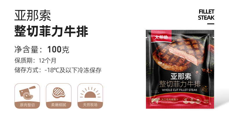 优选丨【买10 送5】大希地亚那索整切菲力牛排100g*2片+云起黑椒牛排400g(5片装)+小开心黑椒牛排100g*3 送 黑椒酱160g+刀叉+意面100g*2+鸡块250g
