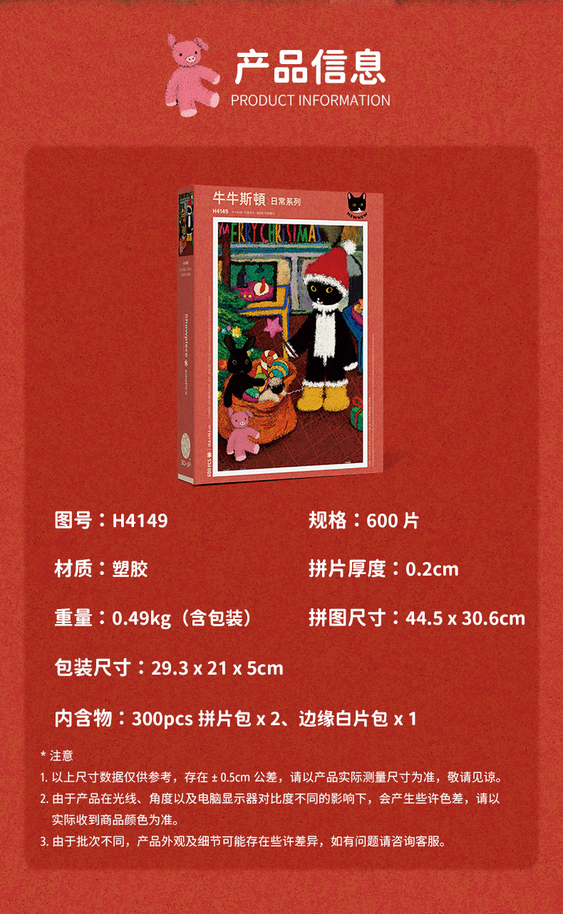 600片 平面塑料拼图 H4149 牛牛斯顿-日常系列-圣诞的祝福魔法