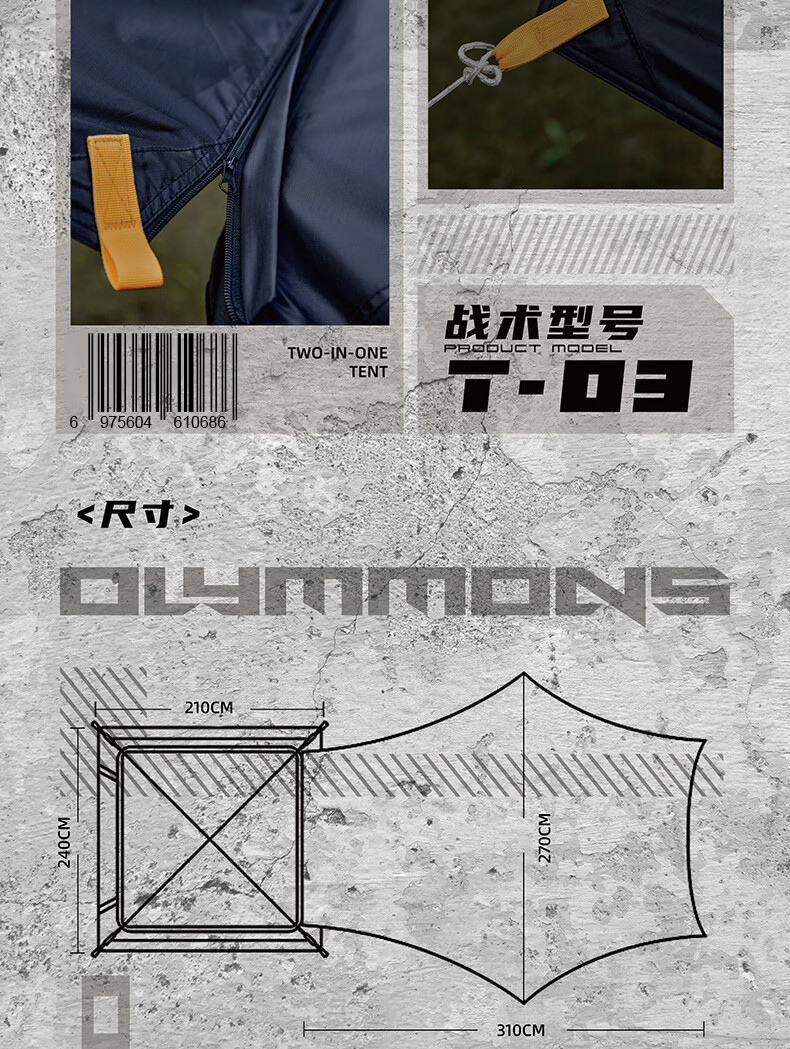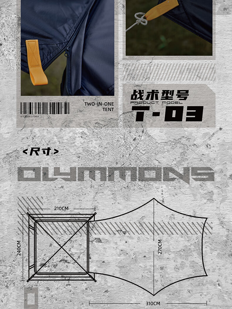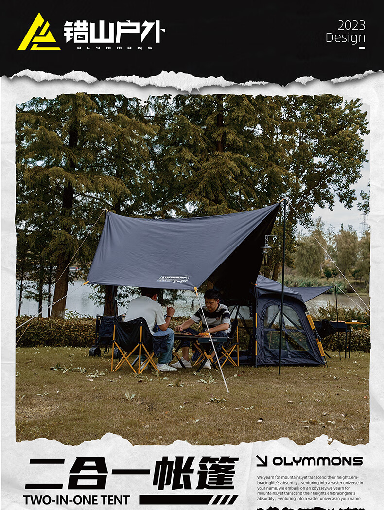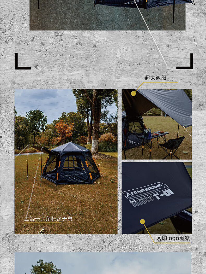 错山 帐篷天幕 黑胶六角天幕一体自开帐篷 T-03