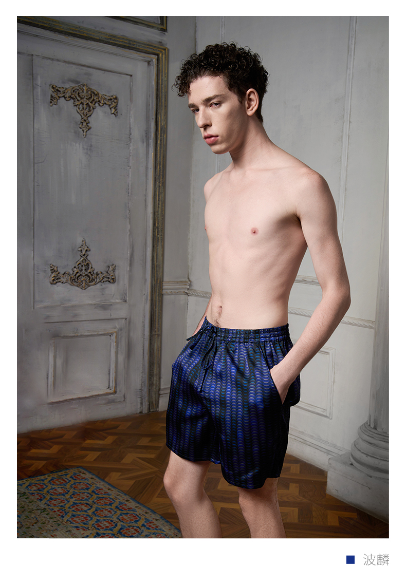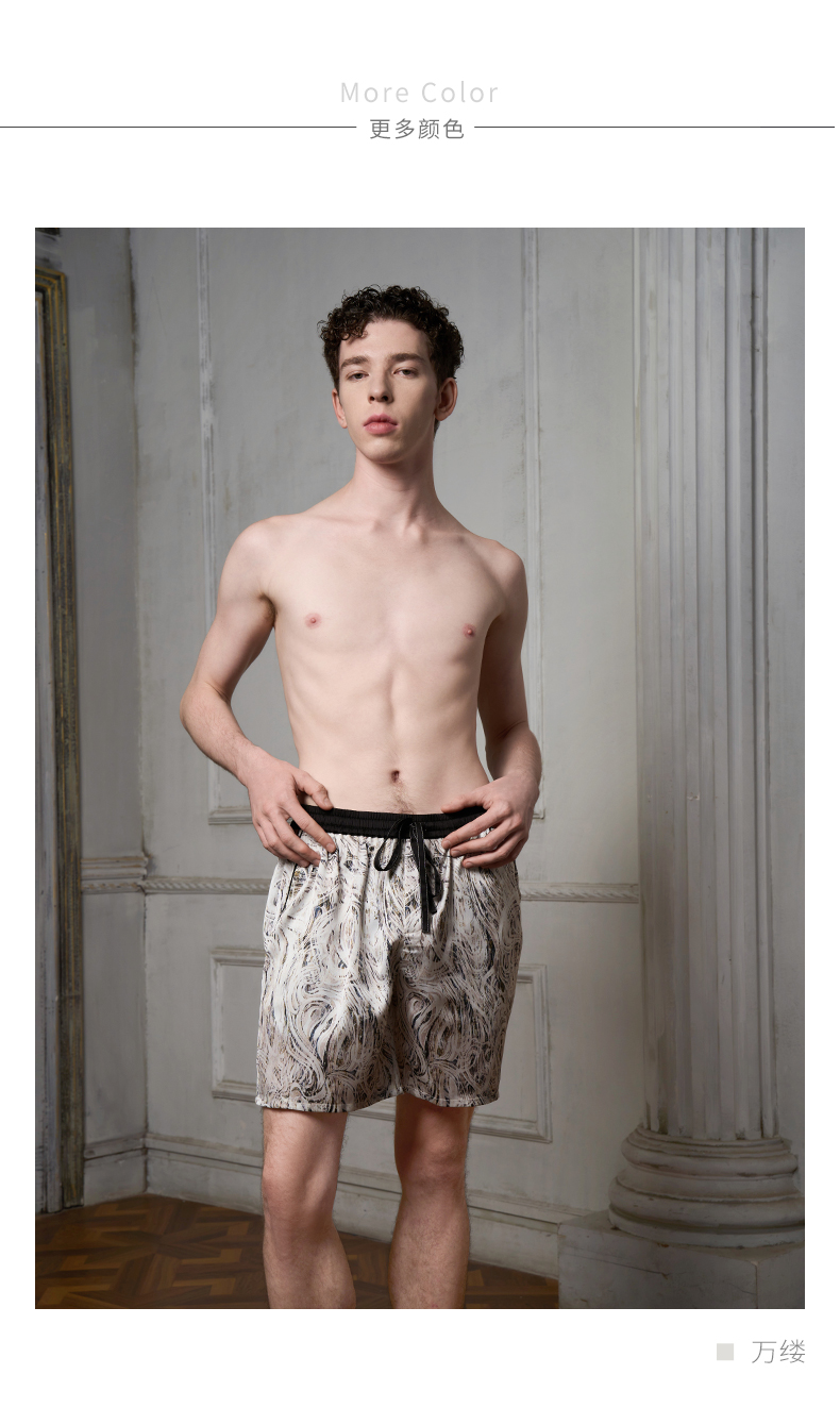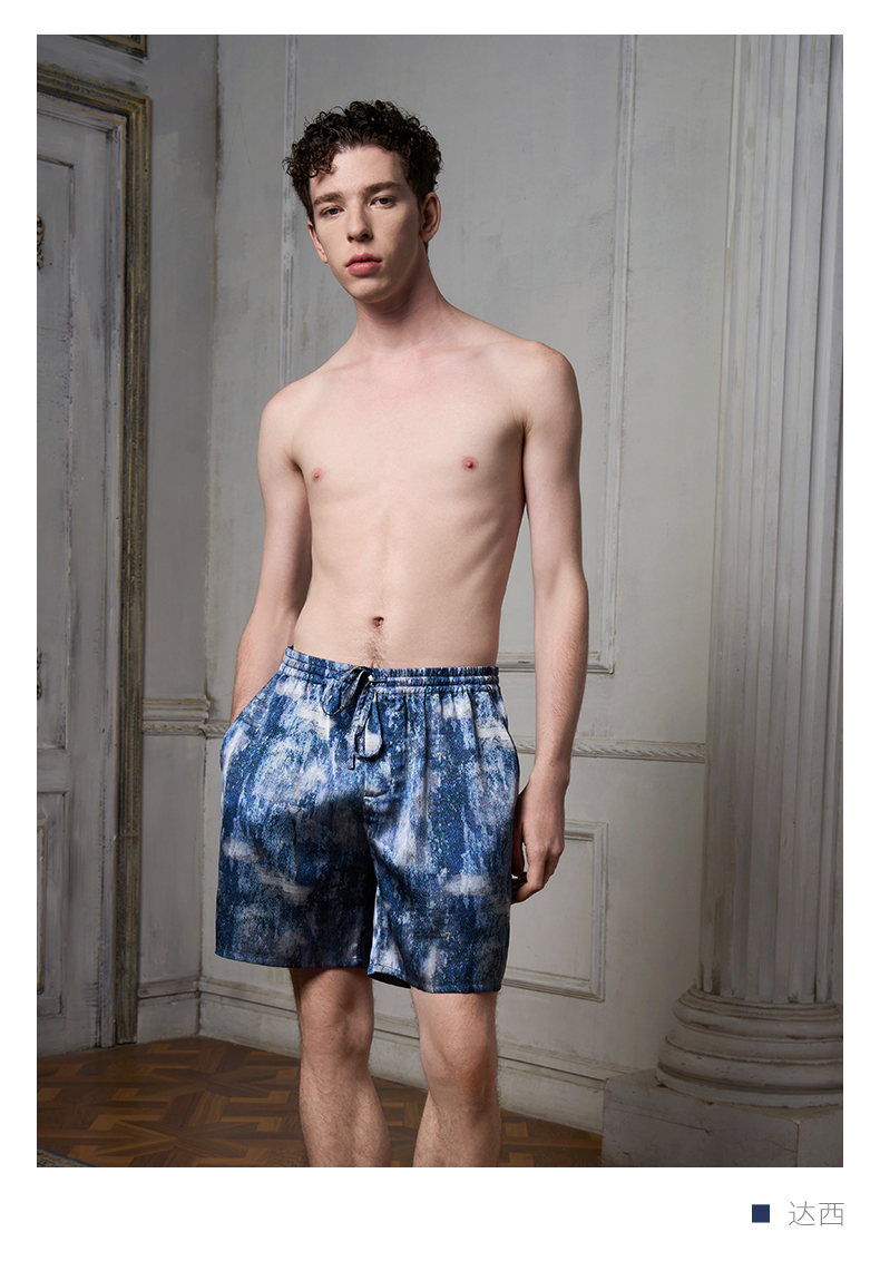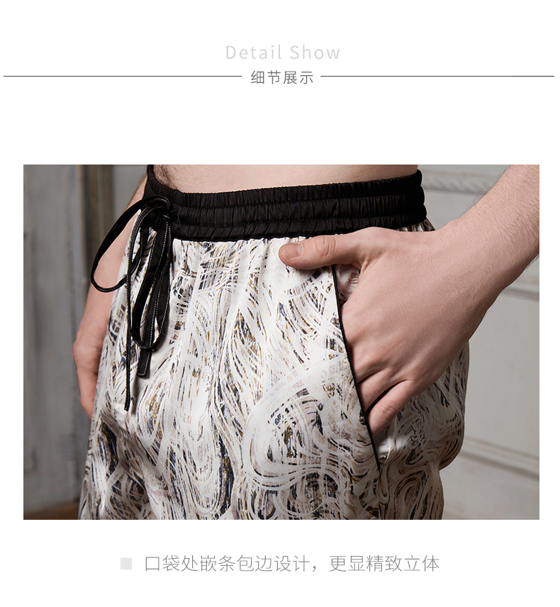 Solo seta22姆米真丝睡裤男丝绸短裤桑蚕丝家居裤印花秋冬