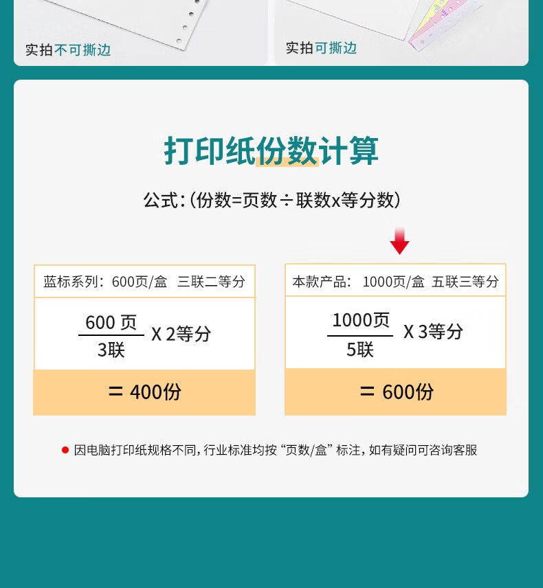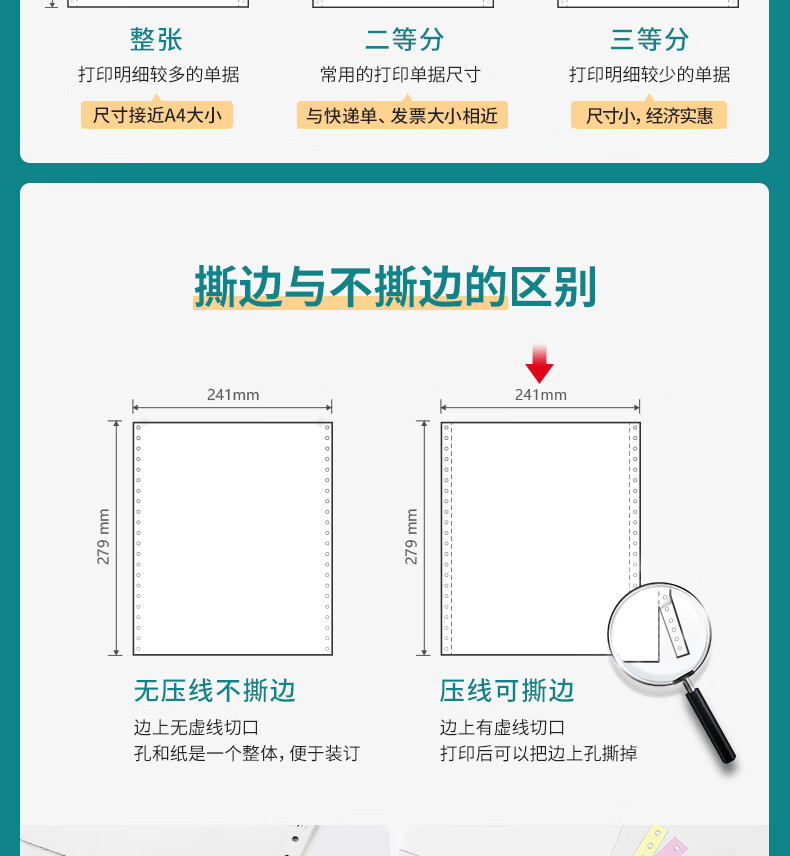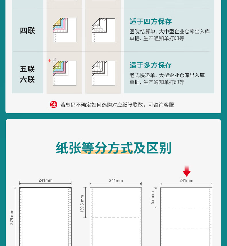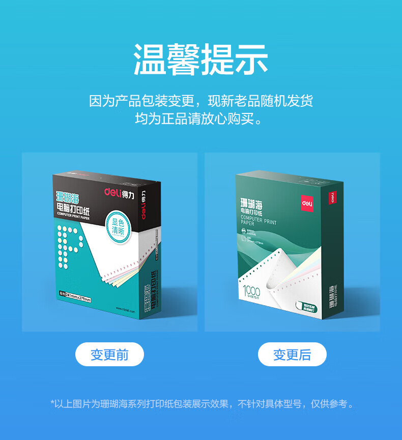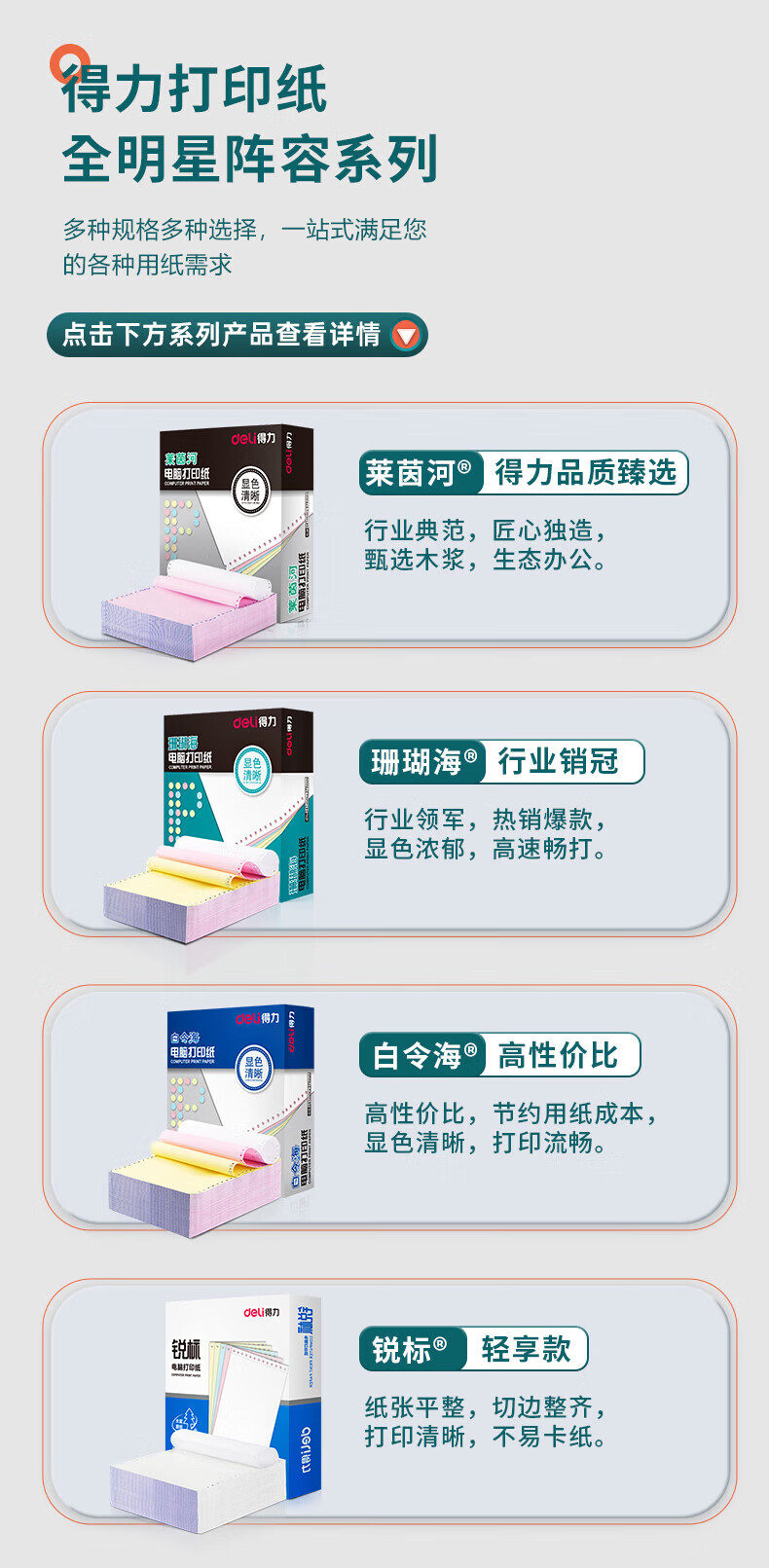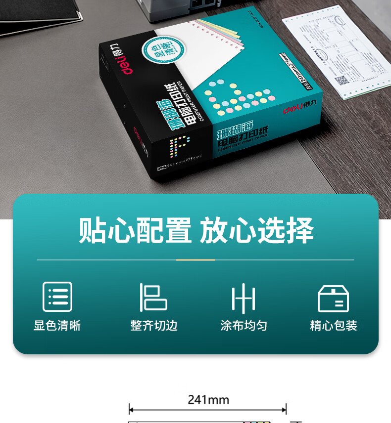 【仅供集采】得力(deli)241-5-1/3CS 珊瑚海打印纸 五联三等分针式打印纸 800页/盒
