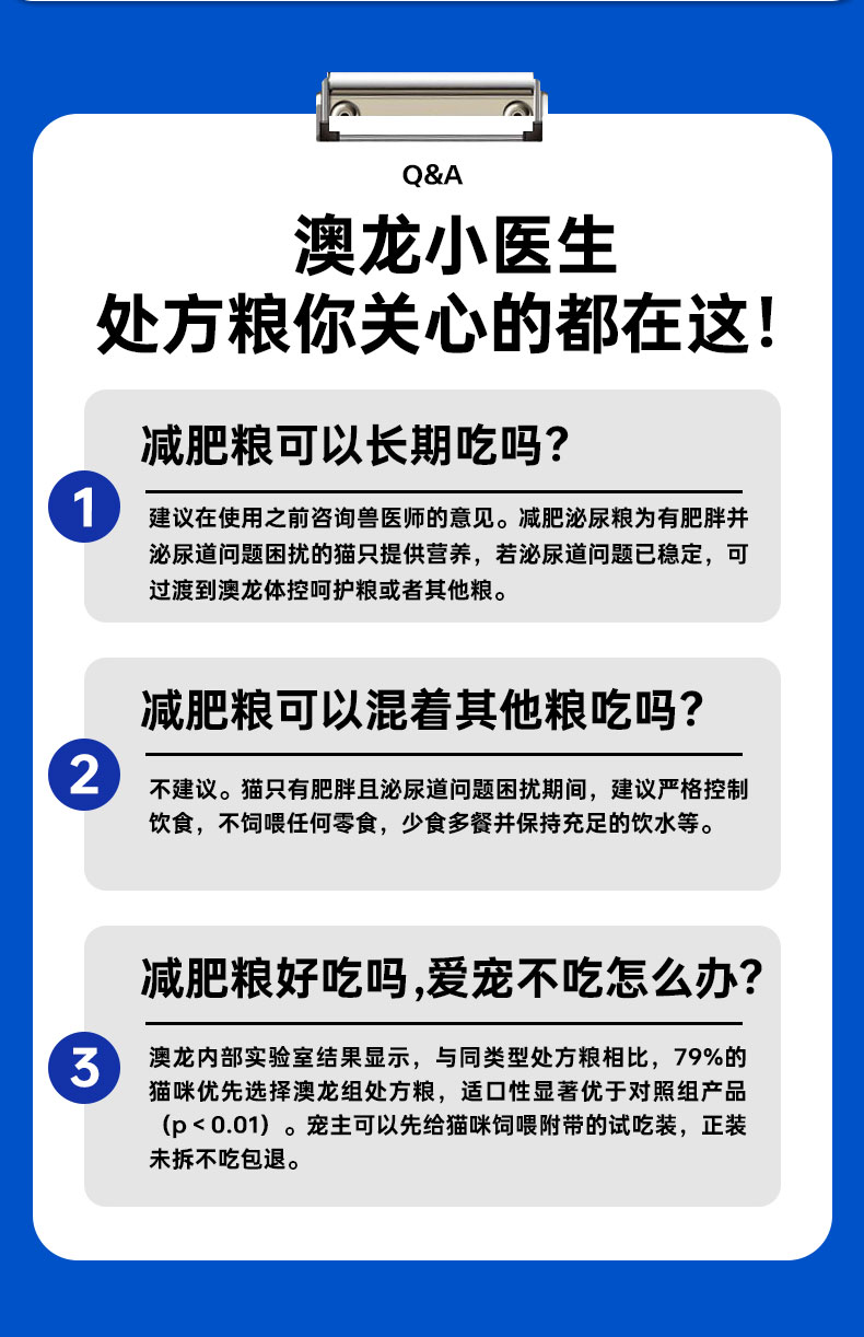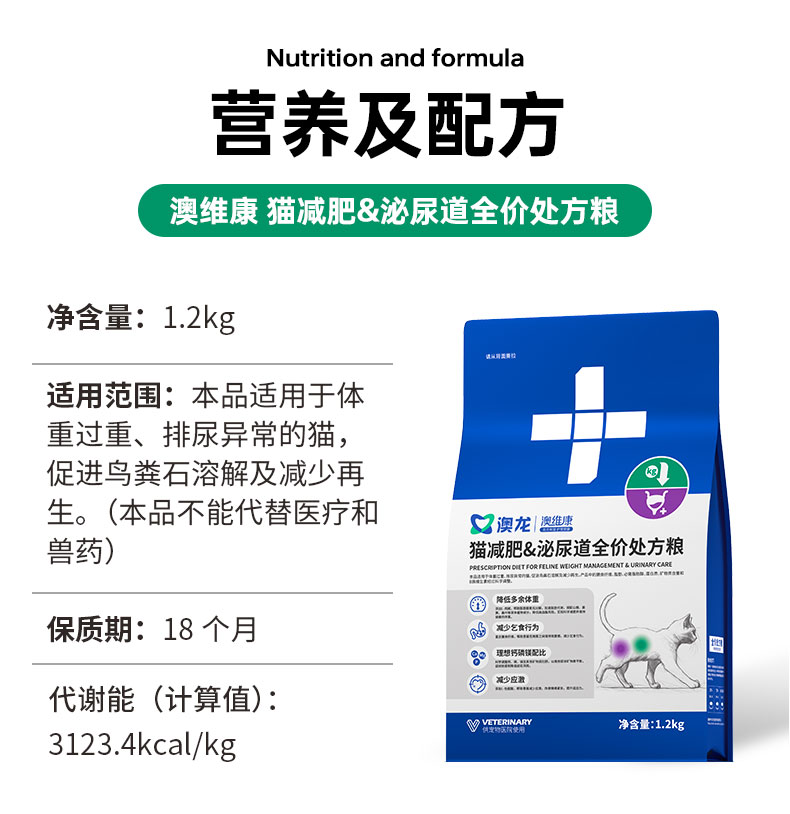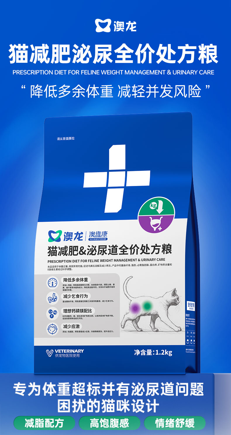 澳龙澳维康猫减肥&泌尿道全价处方粮1.5kg赠50g试吃