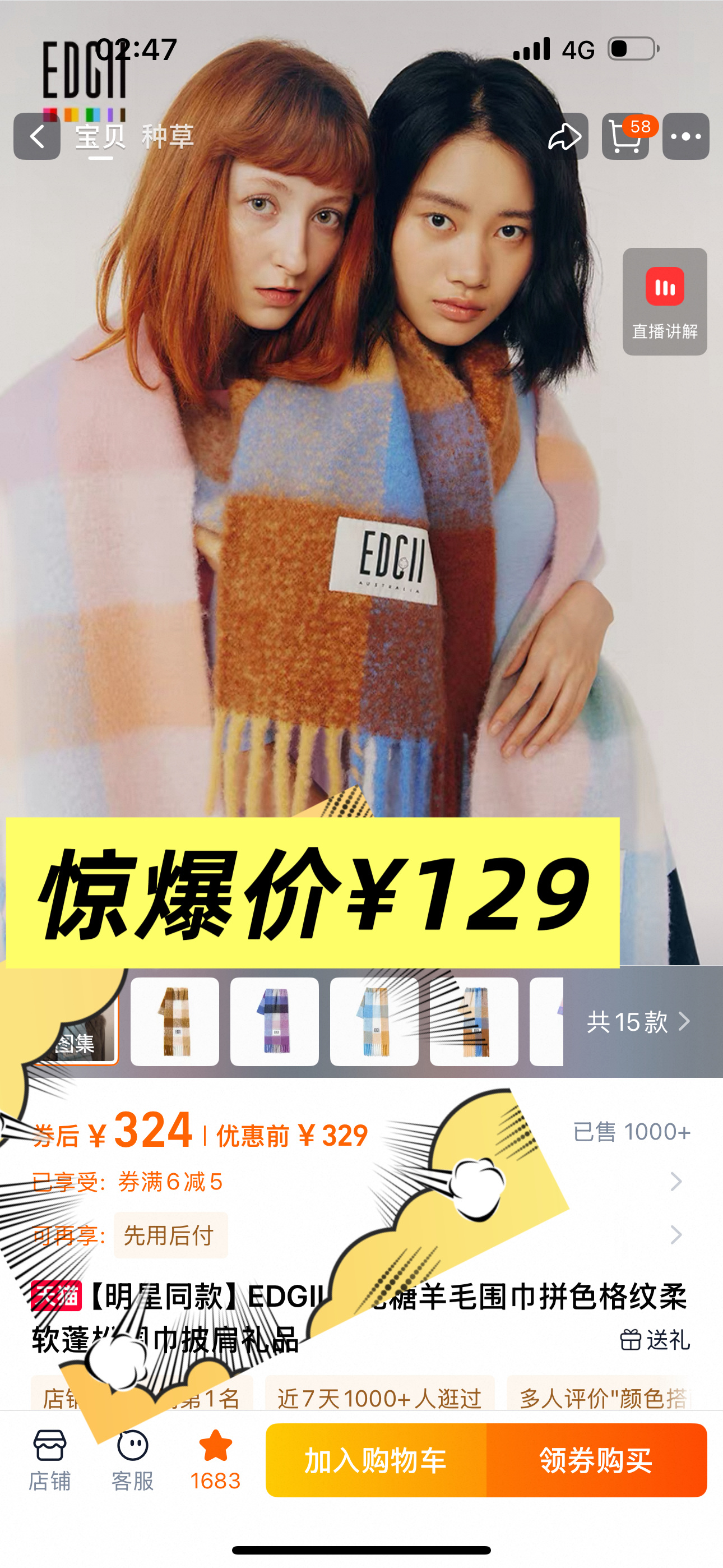 明星博主同款【EDGII棉花糖羊毛围巾】秋冬氛围感神器❗️官网💰300➕,李+琦直播间场均过百万‼️既是围巾又是披肩,颜值和实用性同时拉满